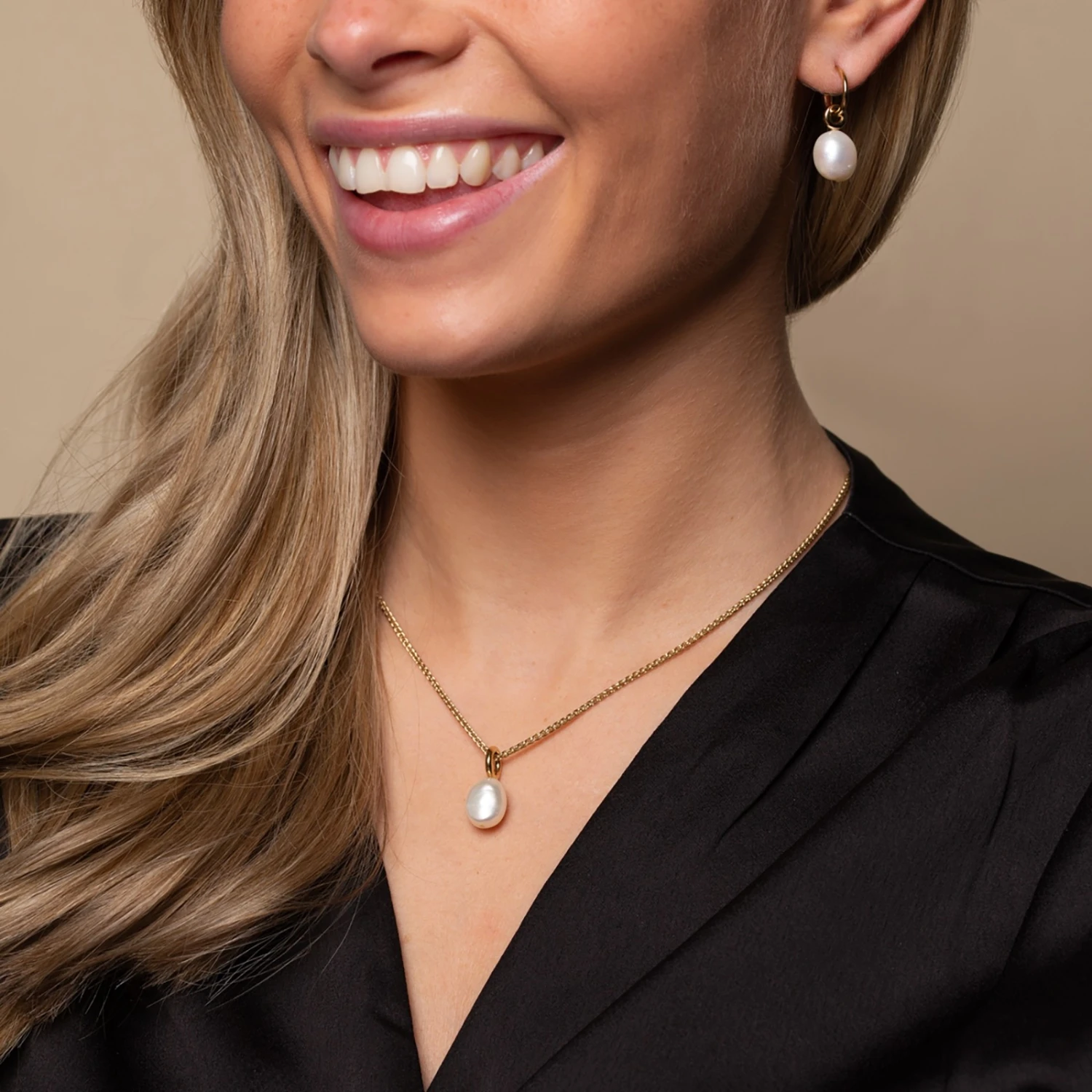 A timeless style that will transcend generations, these 14ct Yellow Plated Silver Pearl Drop Earrings from Chisholm Hunter are a jewellery box staple. Each earring is crafted from 14ct yellow gold-plated sterling silver in an elegant, hooped drop design to a lustrous cultured freshwater pearl. Complete the look with the matching pearl pendant.