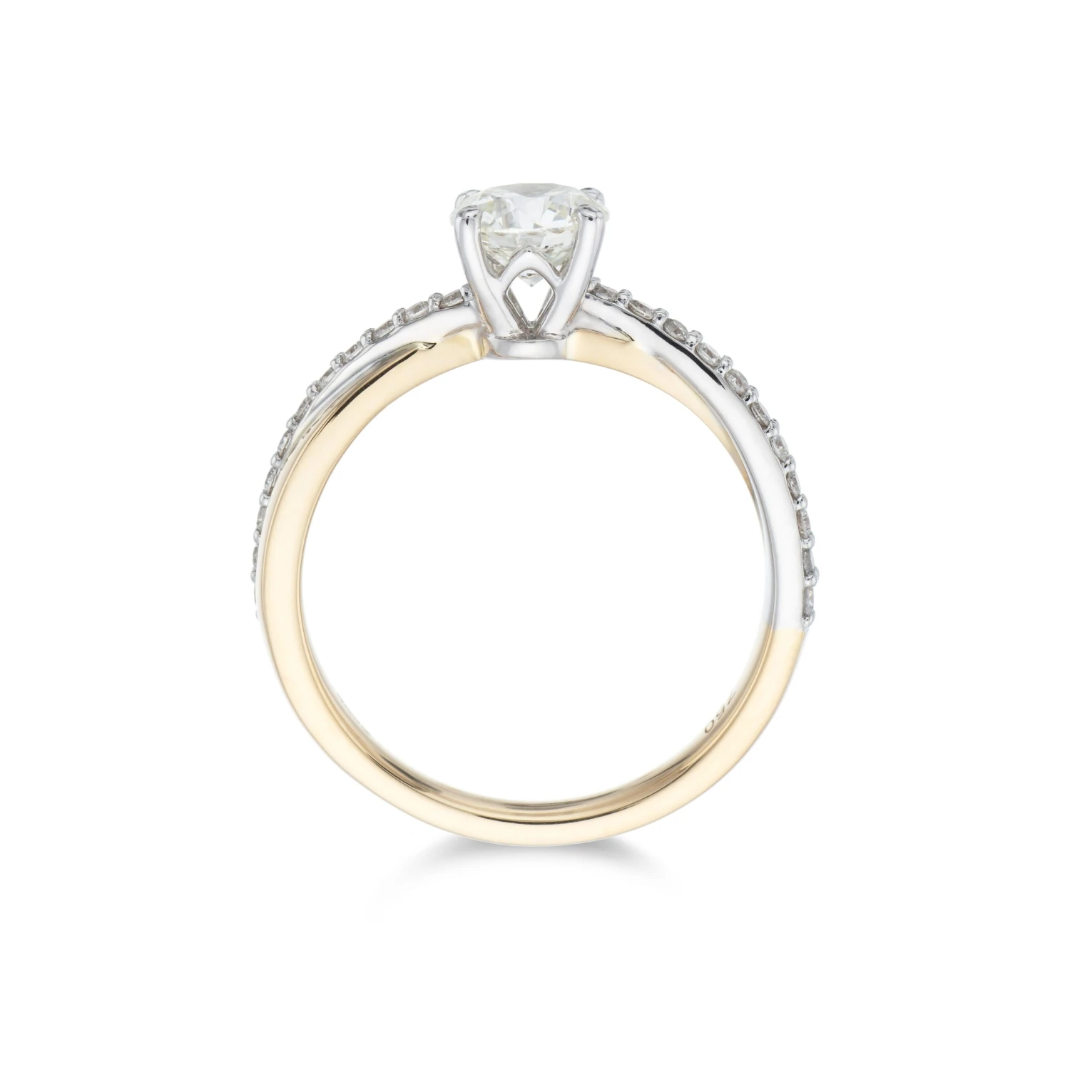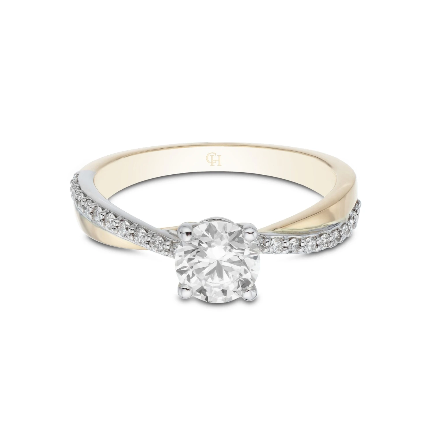 The eye-catching design of this 18ct 2 Colour Brilliant Cut 0.75ct Diamond Solitaire Ring will fit perfectly into any jewellery box. The contrast of 18ct yellow and white gold looks stunning in a twist design that holds elegant diamond shoulders and a brilliant cut diamond in the centre. Diamond information: Cut – Round Brilliant, Colour – G-H, Clarity – SI, Total Carat – 0.90ct.