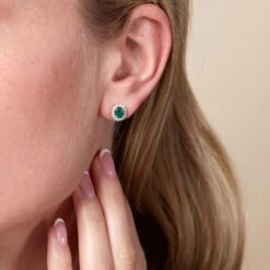 Chisholm Hunter 18ct White Gold Oval Cut 0.33ct Emerald And 0.48ct Diamond Halo Earrings
