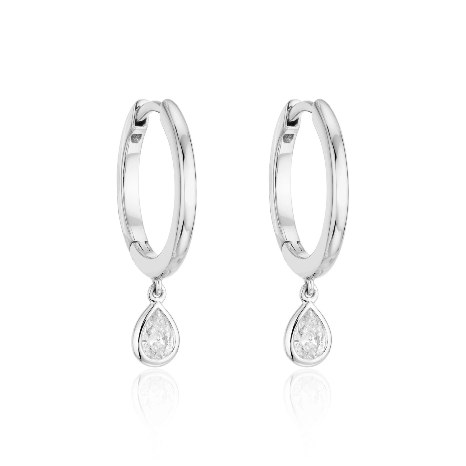 Chisholm Hunter 18ct White Gold 0.28ct Pear Diamond Hoop Earrings