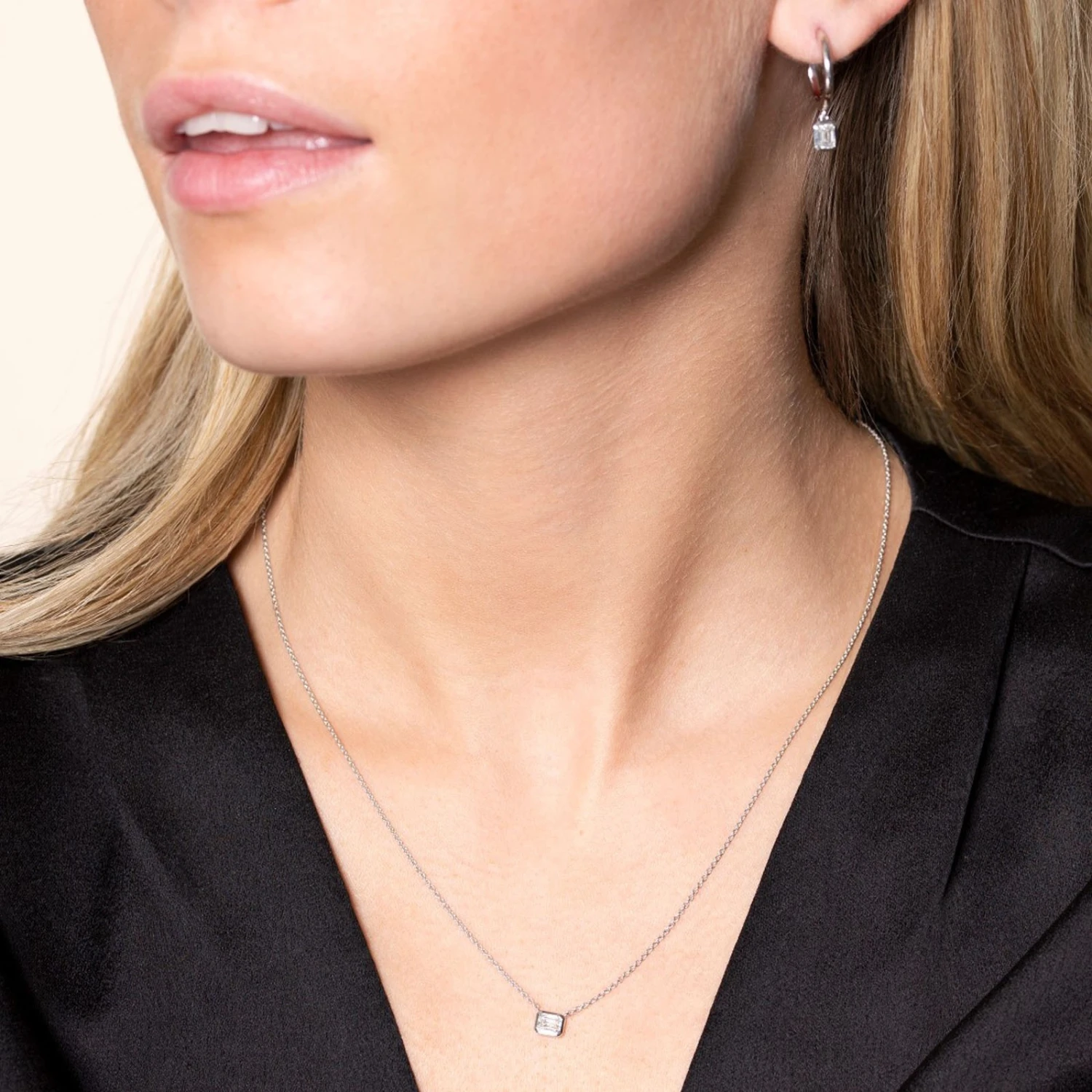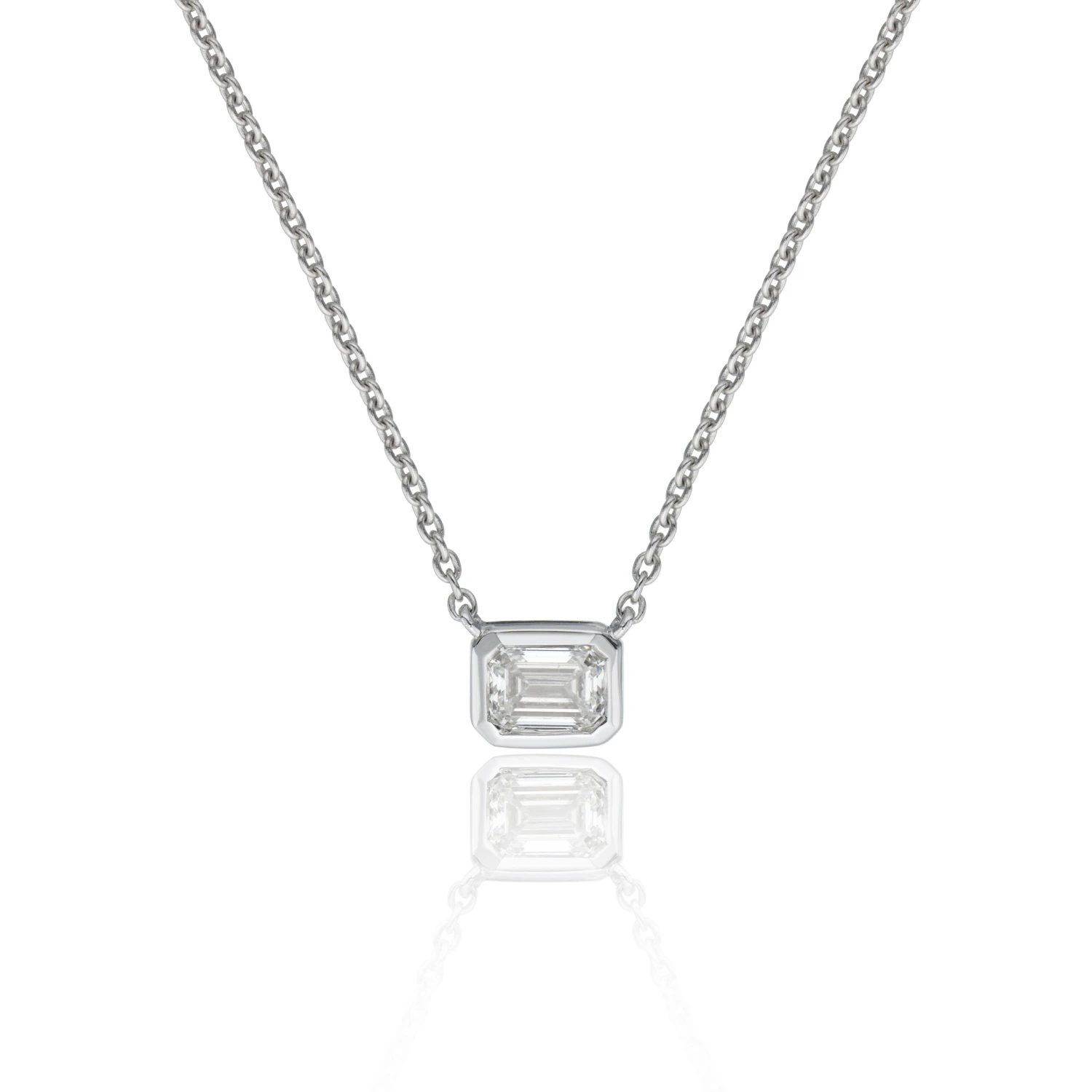 This beautiful 0.30ct solitaire diamond pendant in a lustrous white gold setting looks simply stunning on the neckline. The emerald cut diamond is a stunning minimalistic statement and a gorgeous addition to your jewellery collection.