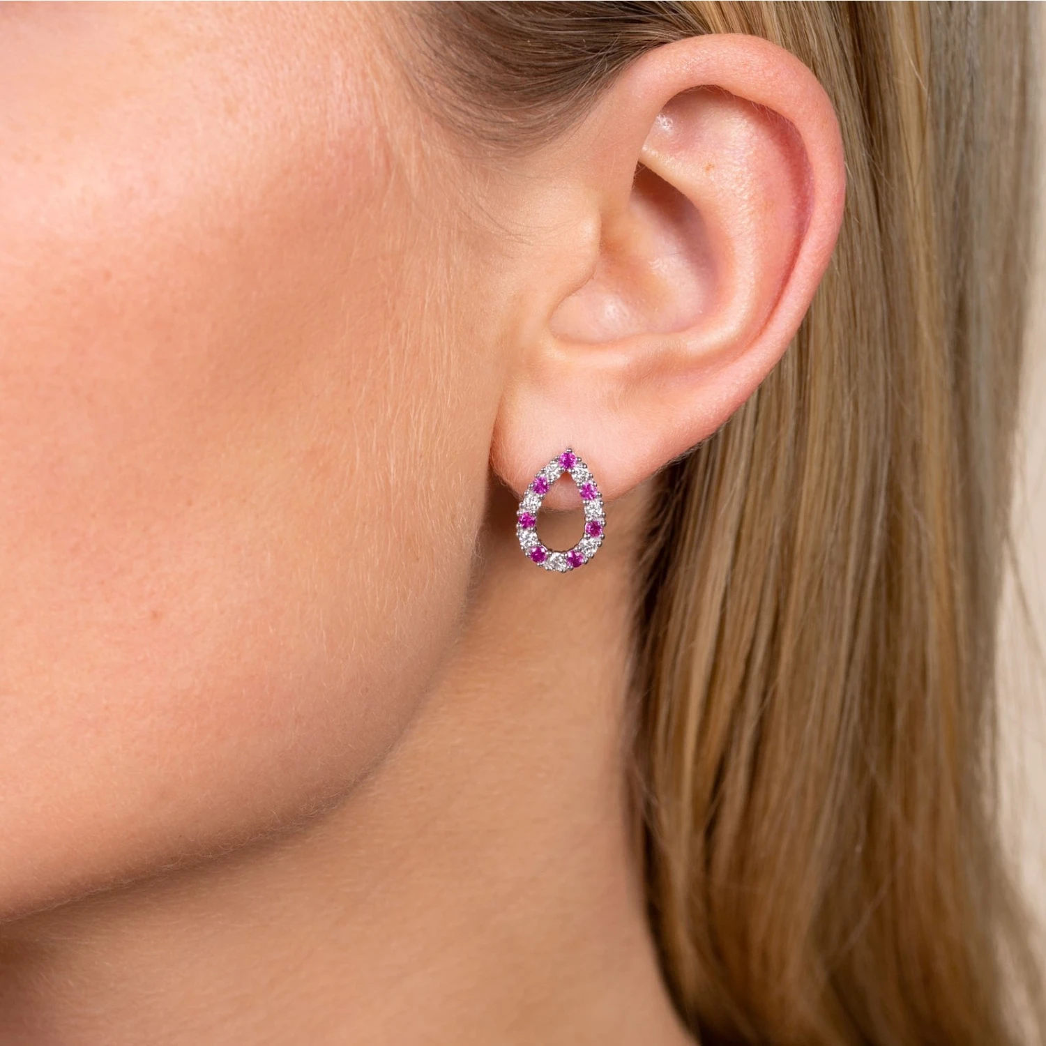 Crafted by our expert jewellers at Chisholm Hunter, this beautiful set of 18ct white gold diamond pear shaped earrings will enhance your jewellery collection. Embellished with 0.42ct rubies and 0.40ct white round brilliant cut diamonds, these earrings are sure to be admired. Pair with our coordinating pendant and you will transform your outfit to an unforgettable look.