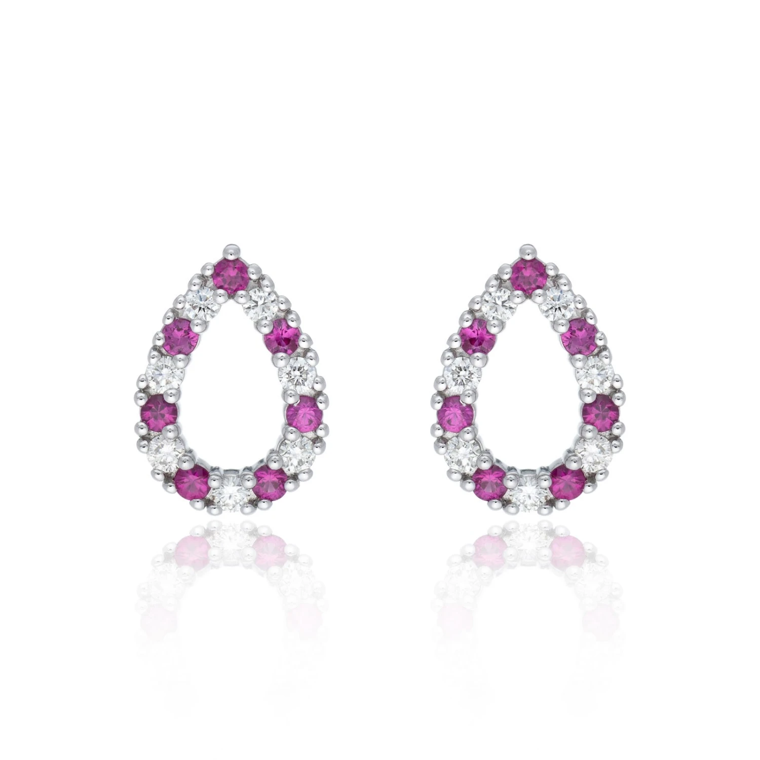Chisholm Hunter 18ct White Gold 0.42ct Ruby & 0.40ct Round Brilliant Diamond Pear Earrings