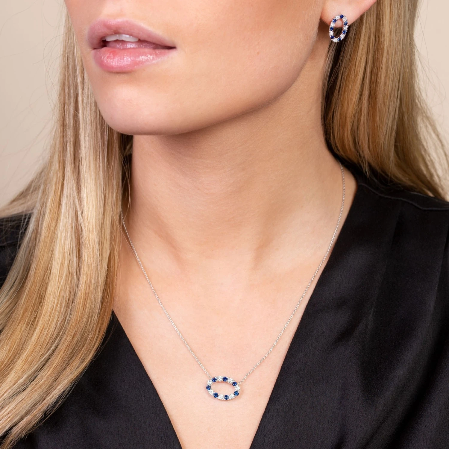 Delicate and radiant, these gorgeous diamond oval earrings are sure to catch a room’s attention. Embellished on an 18ct white gold setting, this display showcases a combination of 0.42ct sapphire and 0.40ct white round brilliant cut diamonds creating a dazzling contrast. Transform your outfit from casual to elegant with these stunning pair of oval diamond earrings at Chisholm Hunter.