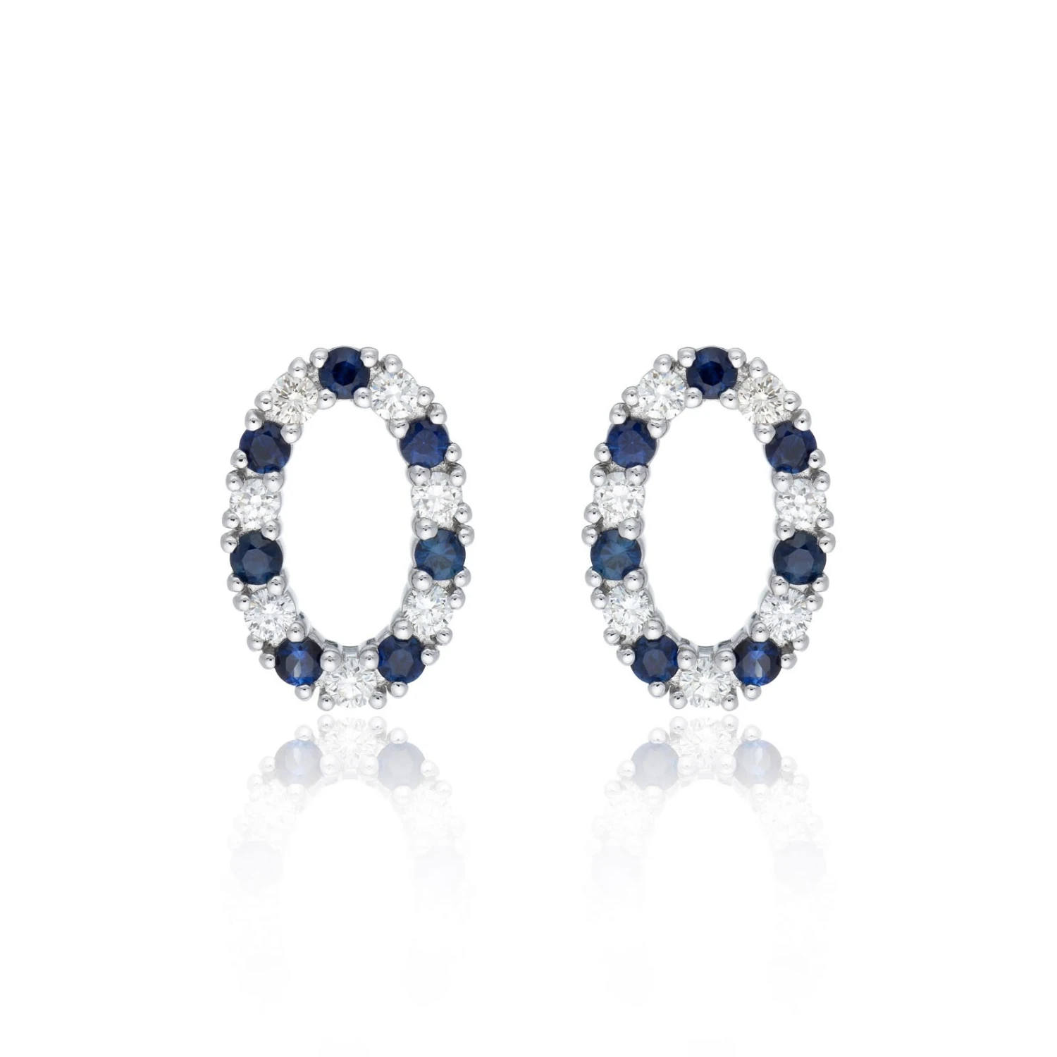 Chisholm Hunter 18ct White Gold 0.42ct Sapphire And 0.40ct Round Brilliant Diamond Oval Earrings