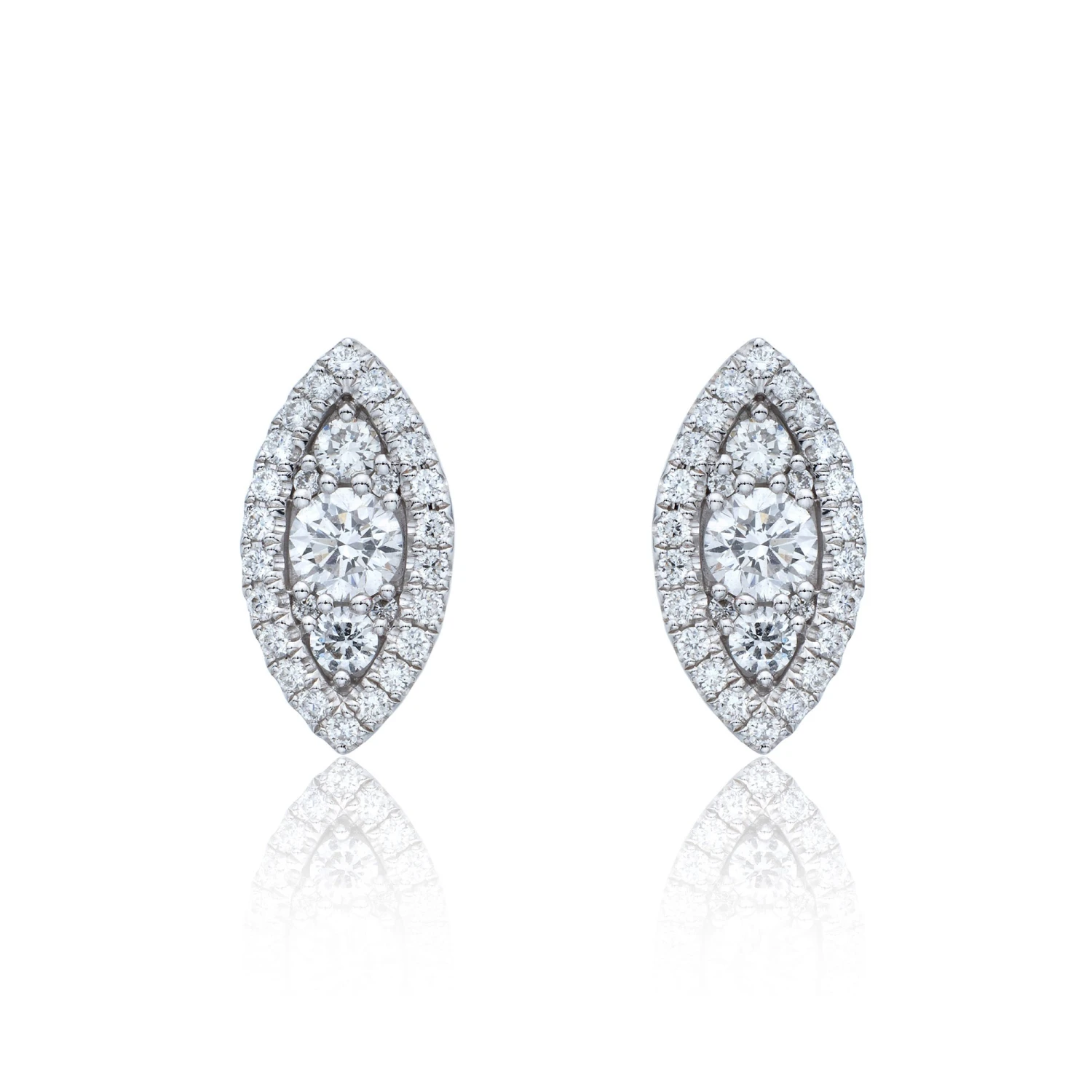 18ct white gold round brilliant diamond 0.60ct marquise shape cluster earrings