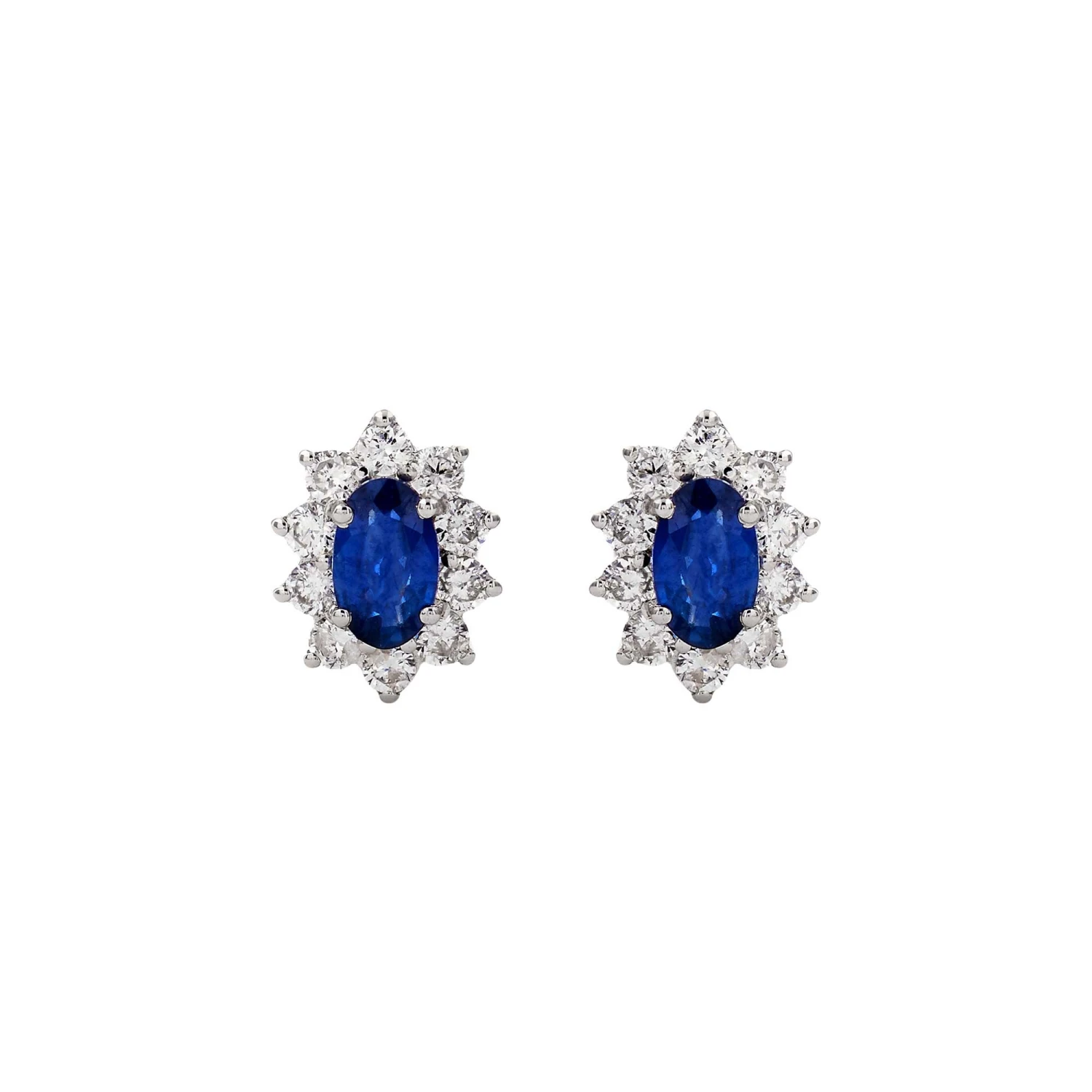 Chisholm Hunter 18ct White Gold 0.95ct Oval Cut Sapphire And Diamond Earrings