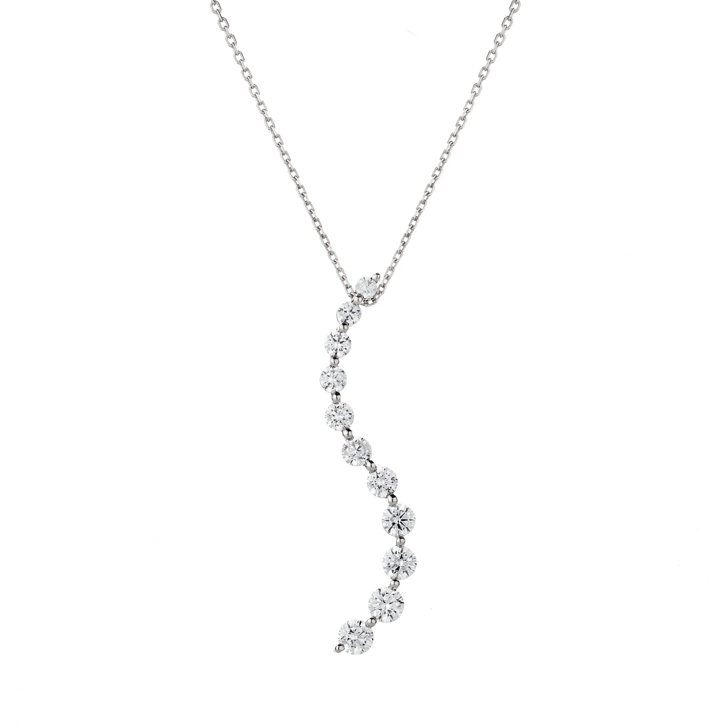 18ct white gold journey drop Necklace, set with round brilliant diamonds weighing a total of 1.50ct.