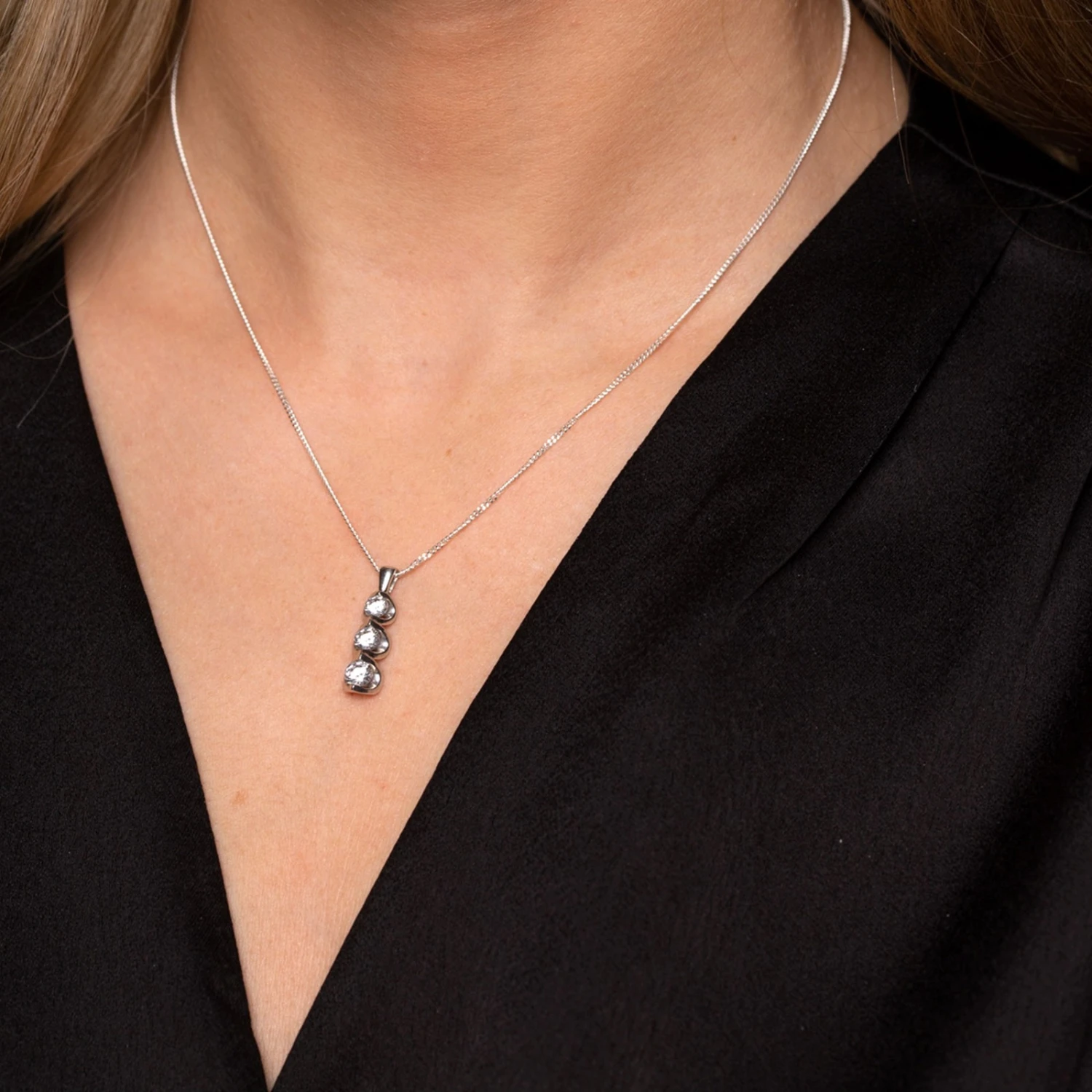 18ct white gold chain and a Necklace with three round brilliant cut diamonds weighing an approximate total weight of 1.00ct set in an open drop.