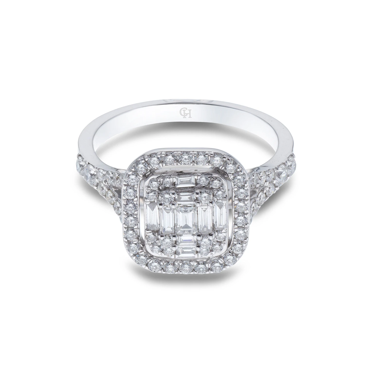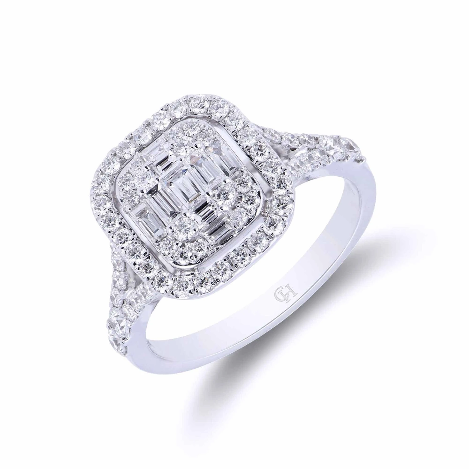 Chisholm Hunter 18ct White Gold Baguette And Brilliant Cut 1.00ct Diamond Cluster Ring