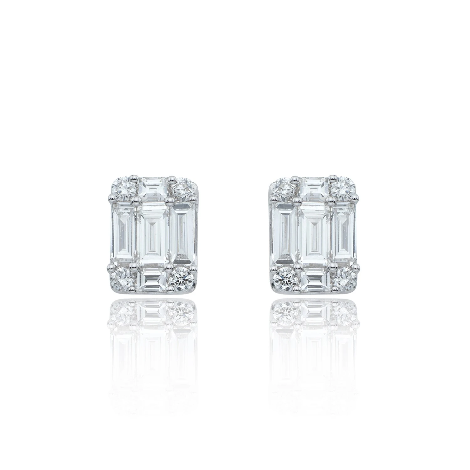 Chisholm Hunter 18ct White Gold Baguette And Brilliant Cut 1.50ct Diamond Stud Earrings