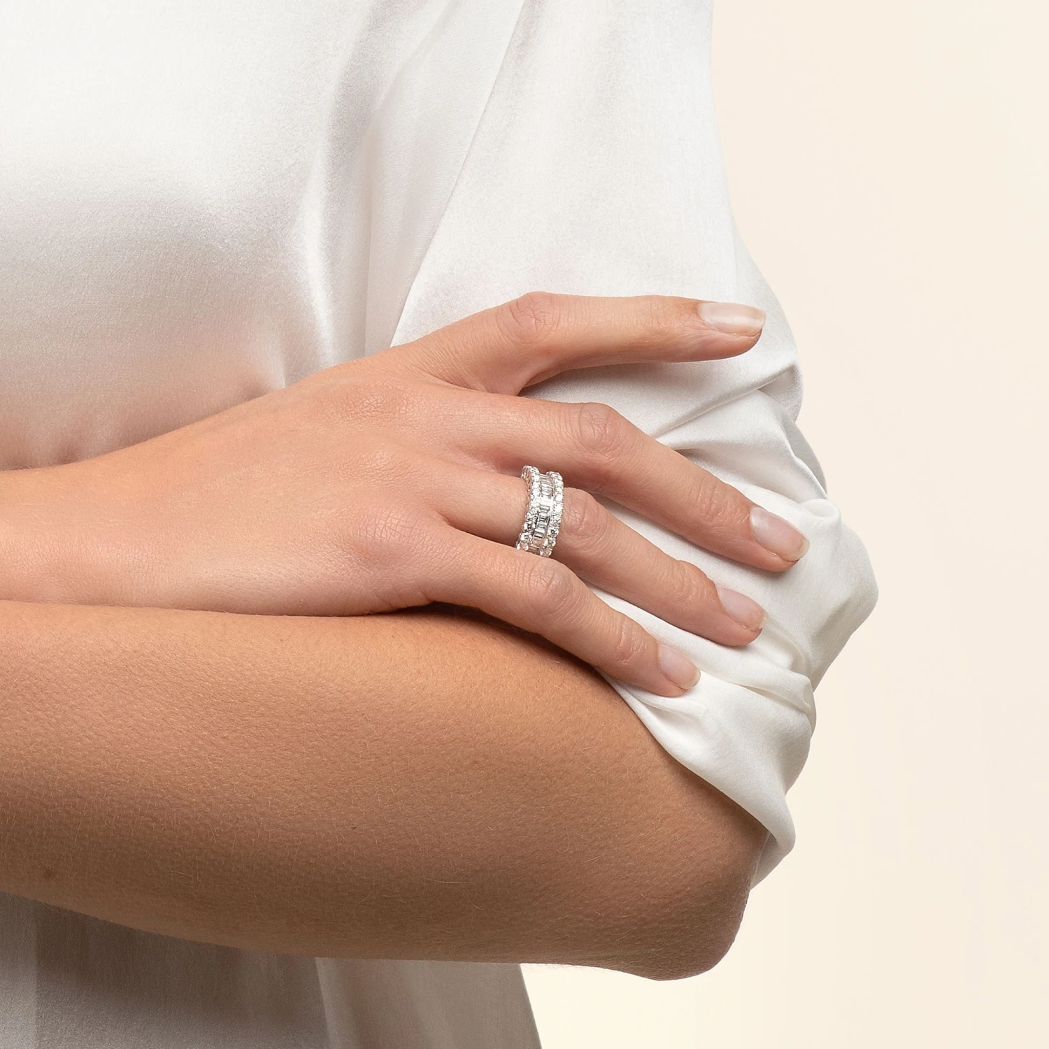 The perfect gift for your loved one, this 18ct white gold diamond ring is the perfect gift to celebrate an anniversary, mark an important mile stone, or just to say “I love you”. With a total diamond carat weight of 2.00, a sparkling row of baguette cut diamonds is finished with a row of round brilliant cut diamonds creating a fancy edge. A truly dazzling design that will be treasured for a lifetime and will a welcomed addition to any jewellery box.