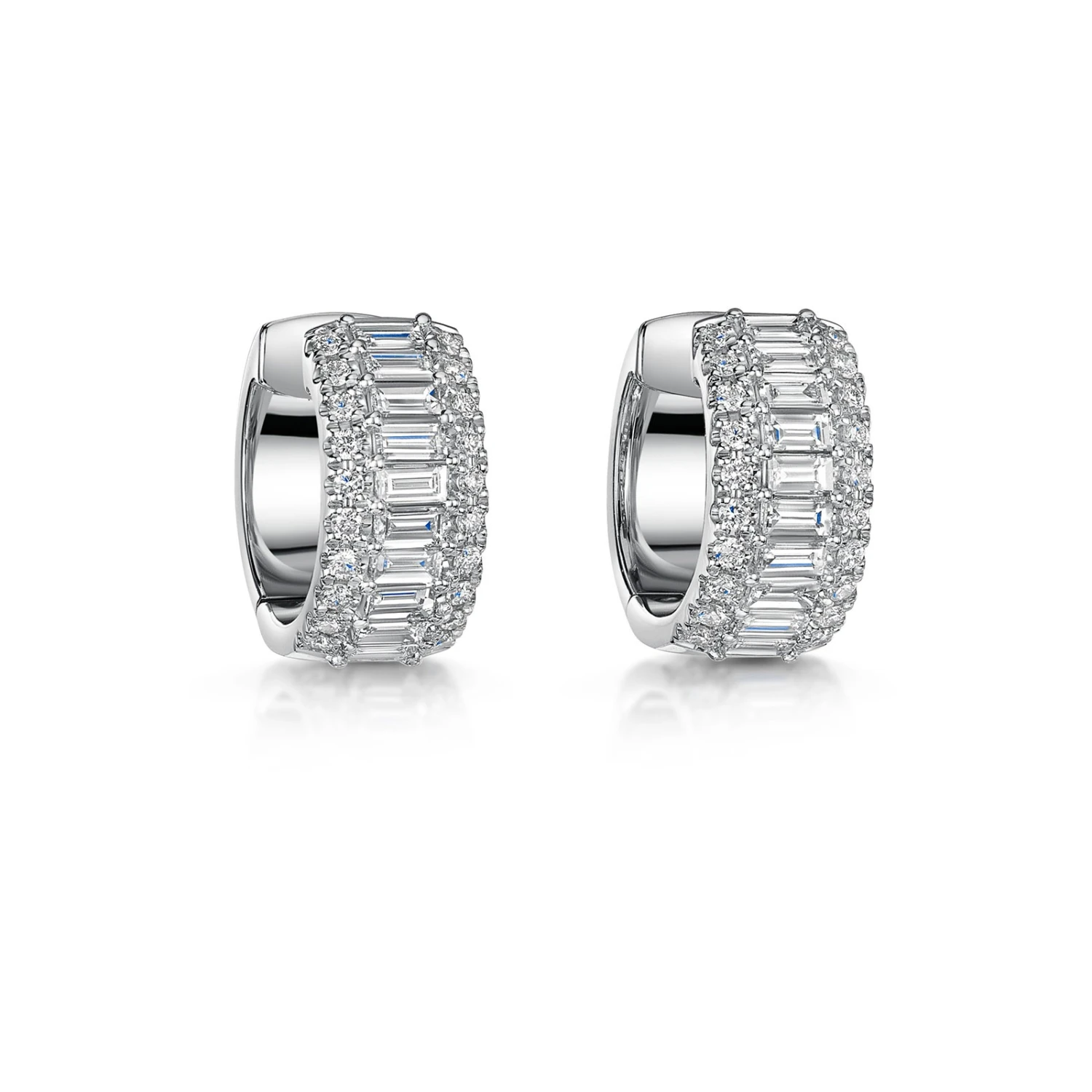 Chisholm Hunter 18ct White Gold Baguette And Round Brilliant Cut Diamond 1.25ct Cluster Hoops
