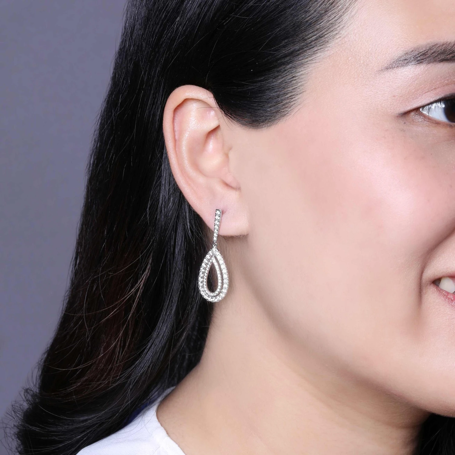 Add some ultimate dazzling luxury to your collection with these 18ct white gold diamond pear shaped earrings. Truly stunning, these unique earrings were designed with a total carat weight of 1.60ct. Guaranteed to sparkle in any light, these gorgeous round brilliant cut diamonds in an open pear shape design will be the perfect finishing touch to all your evening looks.