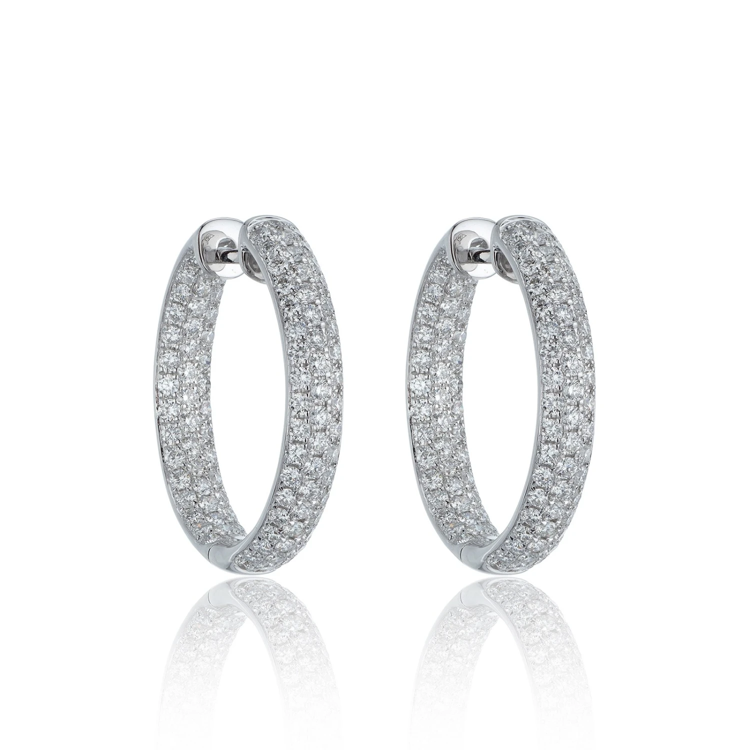 Define luxury and glamour with these 18ct white gold diamond hoops. The perfect accessory for showing off your oppulent side, these pave set diamond hoops have an overall weight of 2.00ct and will sparkle from every angle. Diamond Information: Cut- Round Brilliant, Colour- G-H, Clarity- SI, Carat- 2.00ct