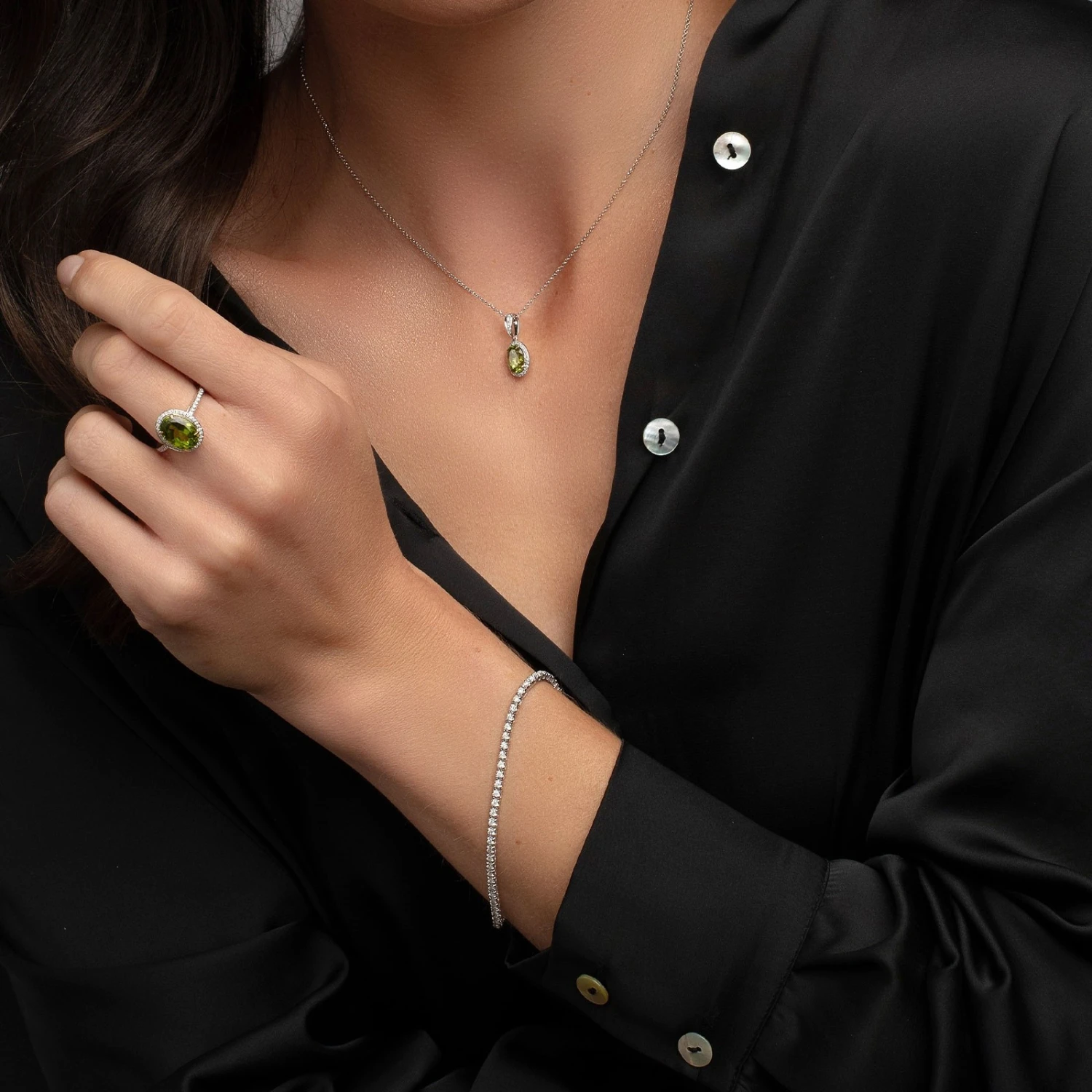 Whether your birthday is in August, you’re celebrating your 16th year of marriage or you simply love the green-gold tones in peridot, this 18ct White Gold Diamond 0.21ct and Peridot 3.15ct Halo Ring from Chisholm Hunter is an elegant choice for any jewellery collector. A striking oval peridot sits within a classic four-claw setting surrounded by a diamond halo and shoulders on a white gold band. Wear this with the matching peridot items for a stunning look.