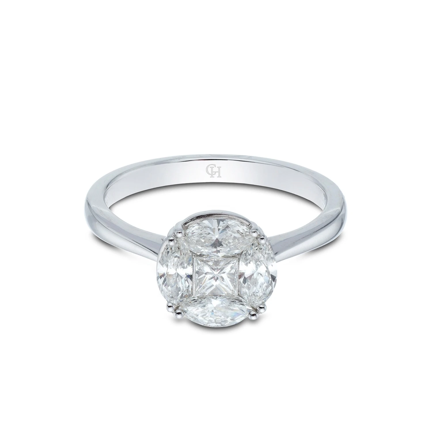 Chisholm Hunter 18ct White Gold Marquise And Princess Cut 0.90ct Diamond Cluster Ring