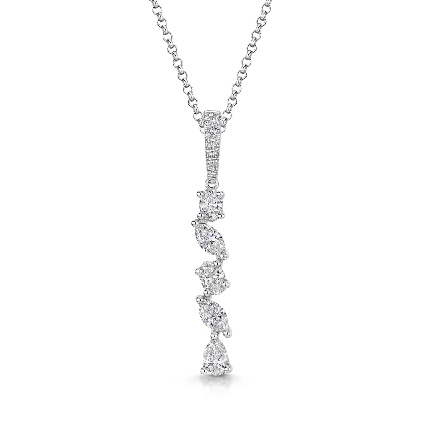 Add a glamourous statement to your wardrobe with this mix cut pendant necklace. Crafted from oval, marquise, brilliant and pear cut diamonds with a total carat weight of 0.44ct, this luxury ladies pendant is the perfect balance of elegance and glamour.