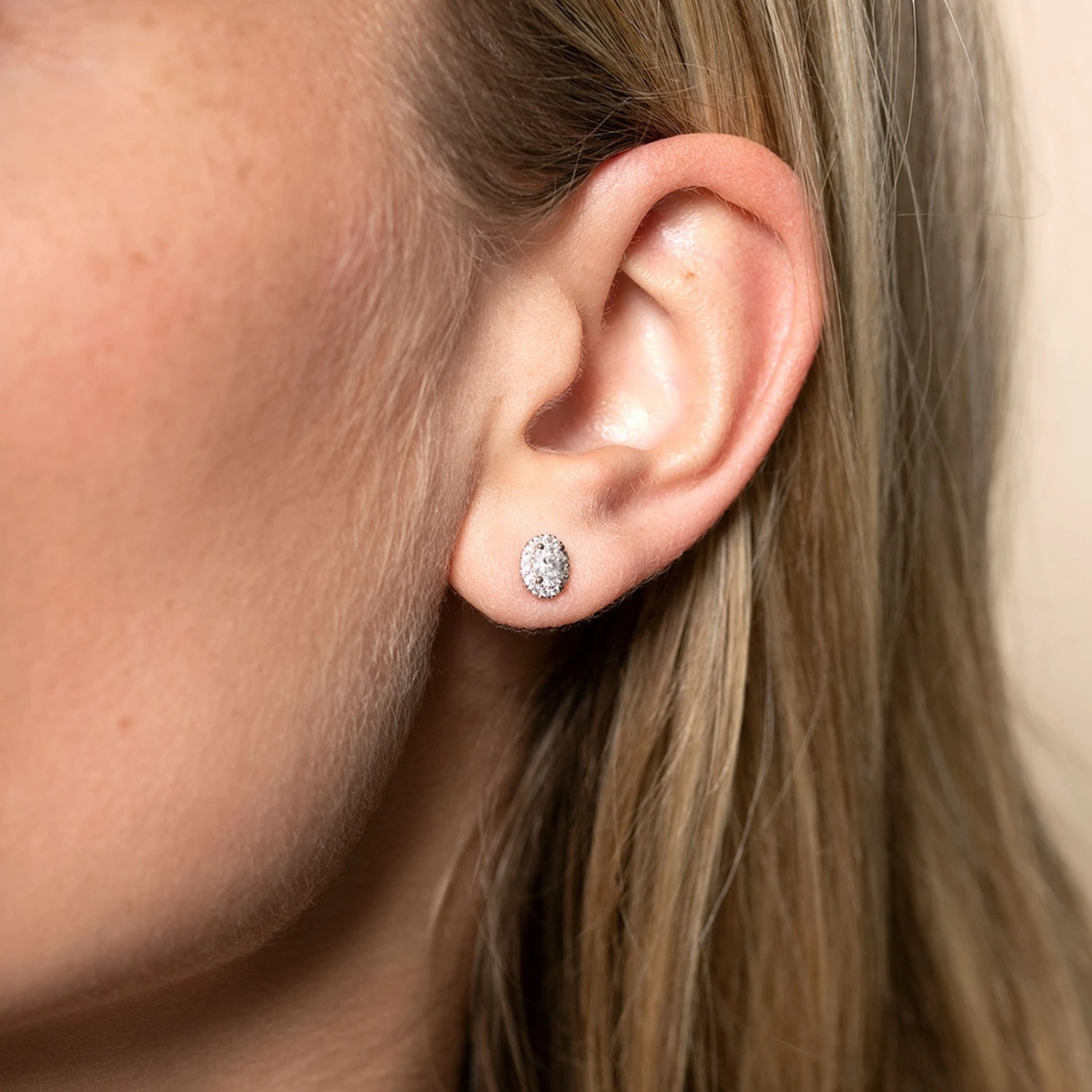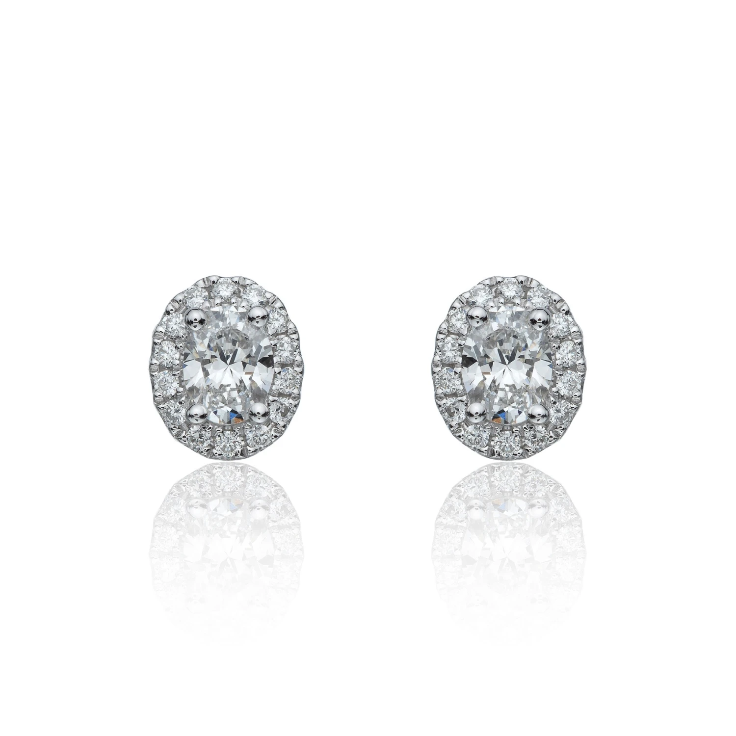 Chisholm Hunter 18ct White Gold Oval Cut 0.70ct Diamond Halo Stud Earrings