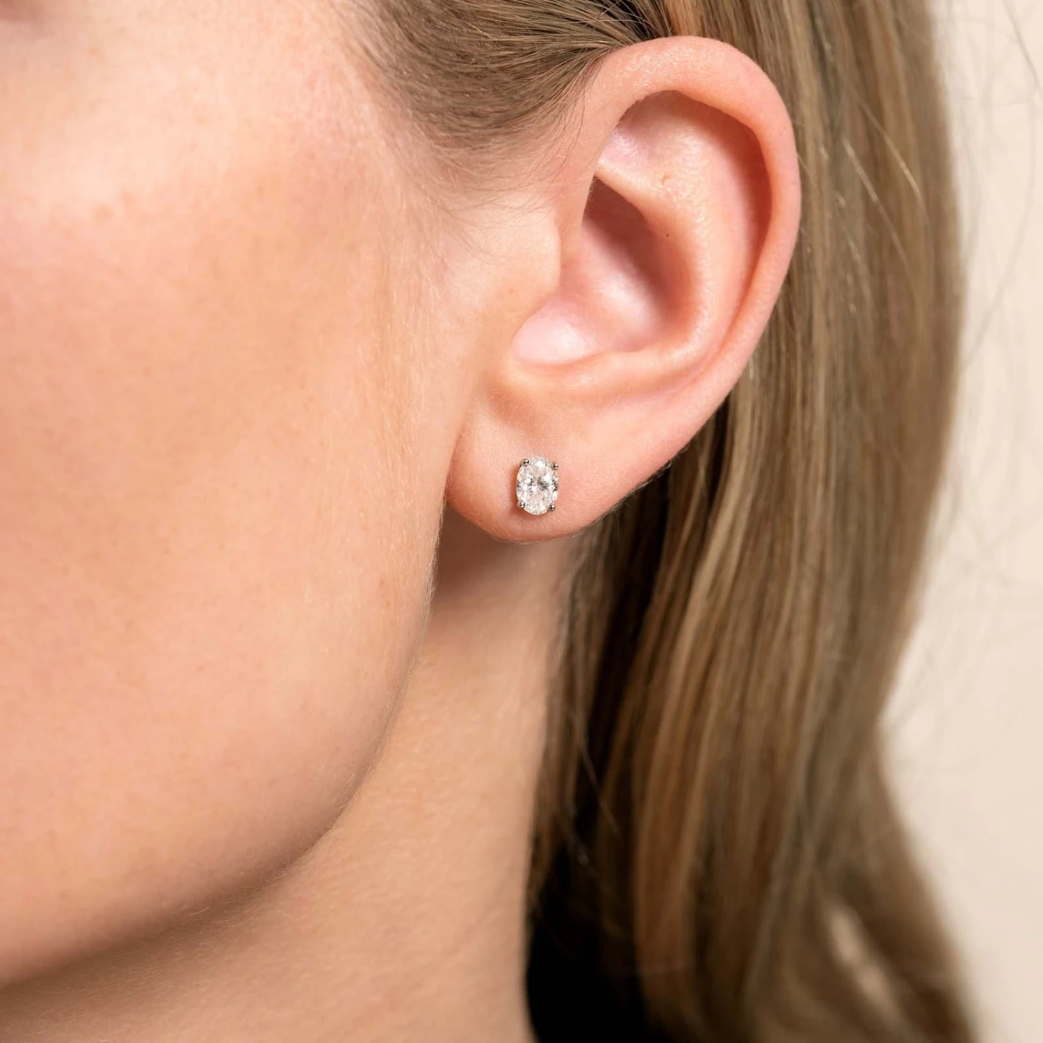 Surprise your loved one with these stunning 18ct white gold 1.00ct diamond stud earrings. Designed with oval cut diamond solitaires, held in a four claw setting with a carat weight of 0.50ct in each ear, these sparkly diamonds will become a firm favourite in your collection.