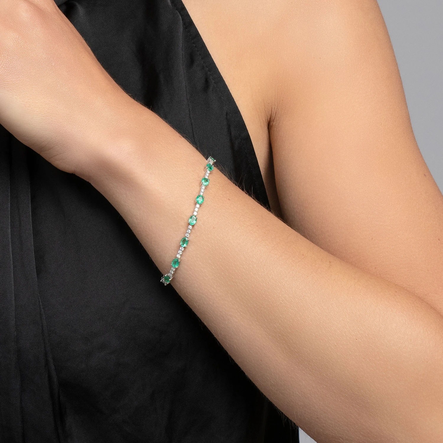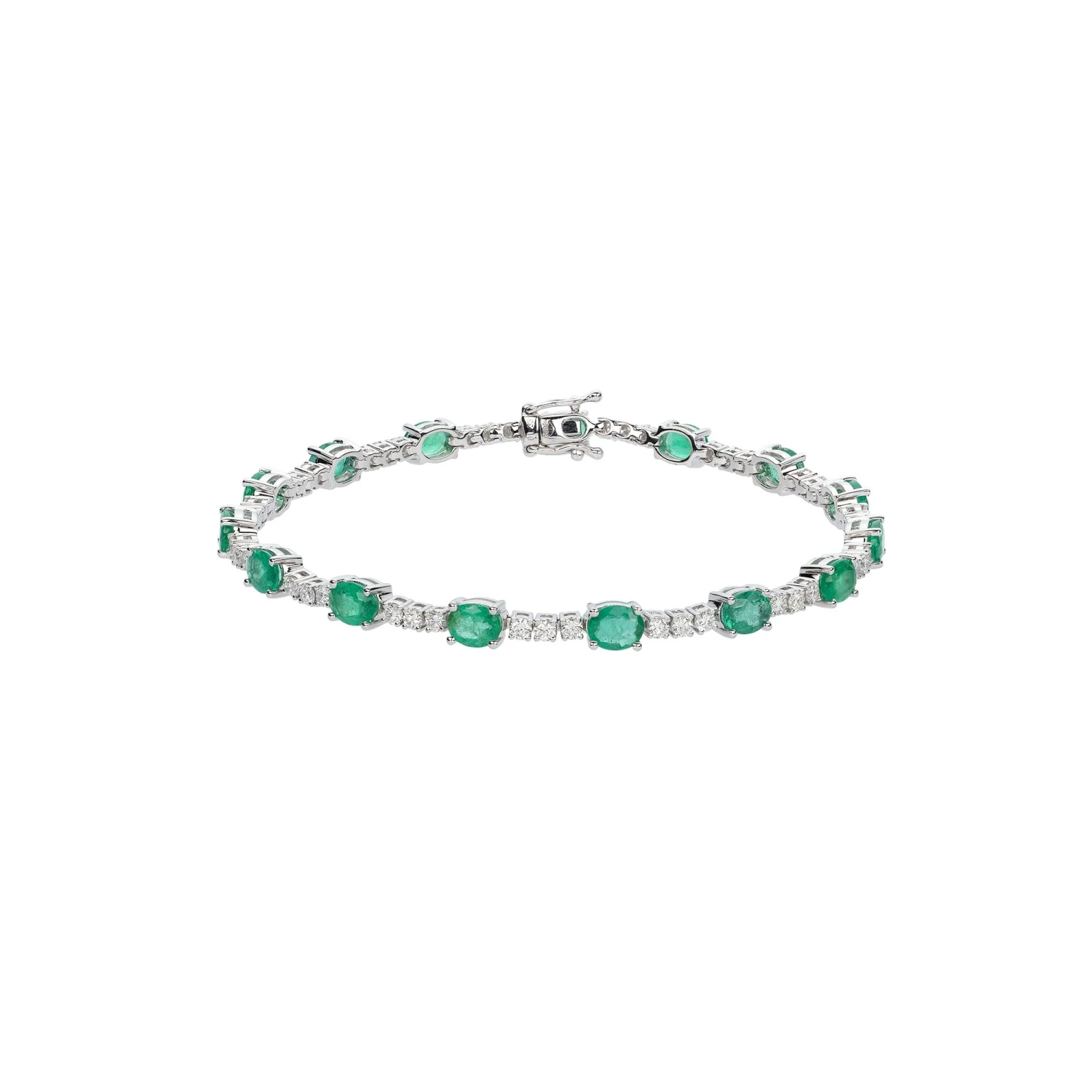 A timeless design, this 18ct white gold emerald and diamond bracelet displays a classic sparkle that will never go out of style. Simply stunning and made of a breathtaking row of 0.50ct oval emeralds and 1.35ct diamonds, this would complete any look for any special occasion and a beautiful additon to any jewellery collection.