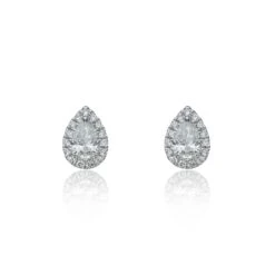 Be the first to review “Chisholm Hunter 18ct White Gold Pear Cut 0.71ct Diamond Halo Stud Earrings” Cancel reply