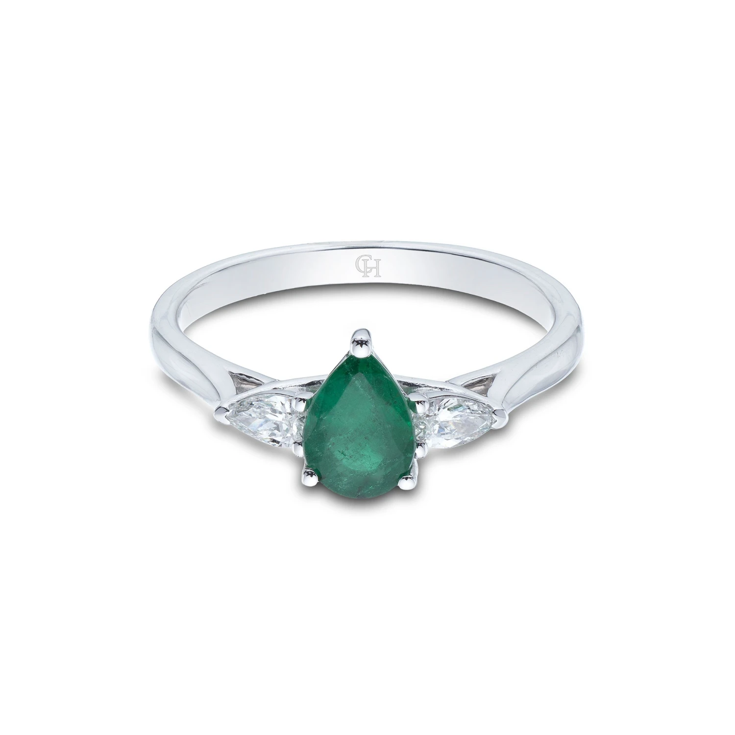Chisholm Hunter 18ct White Gold Pear Cut Emerald And Diamond 0.87ct Three Stone Ring