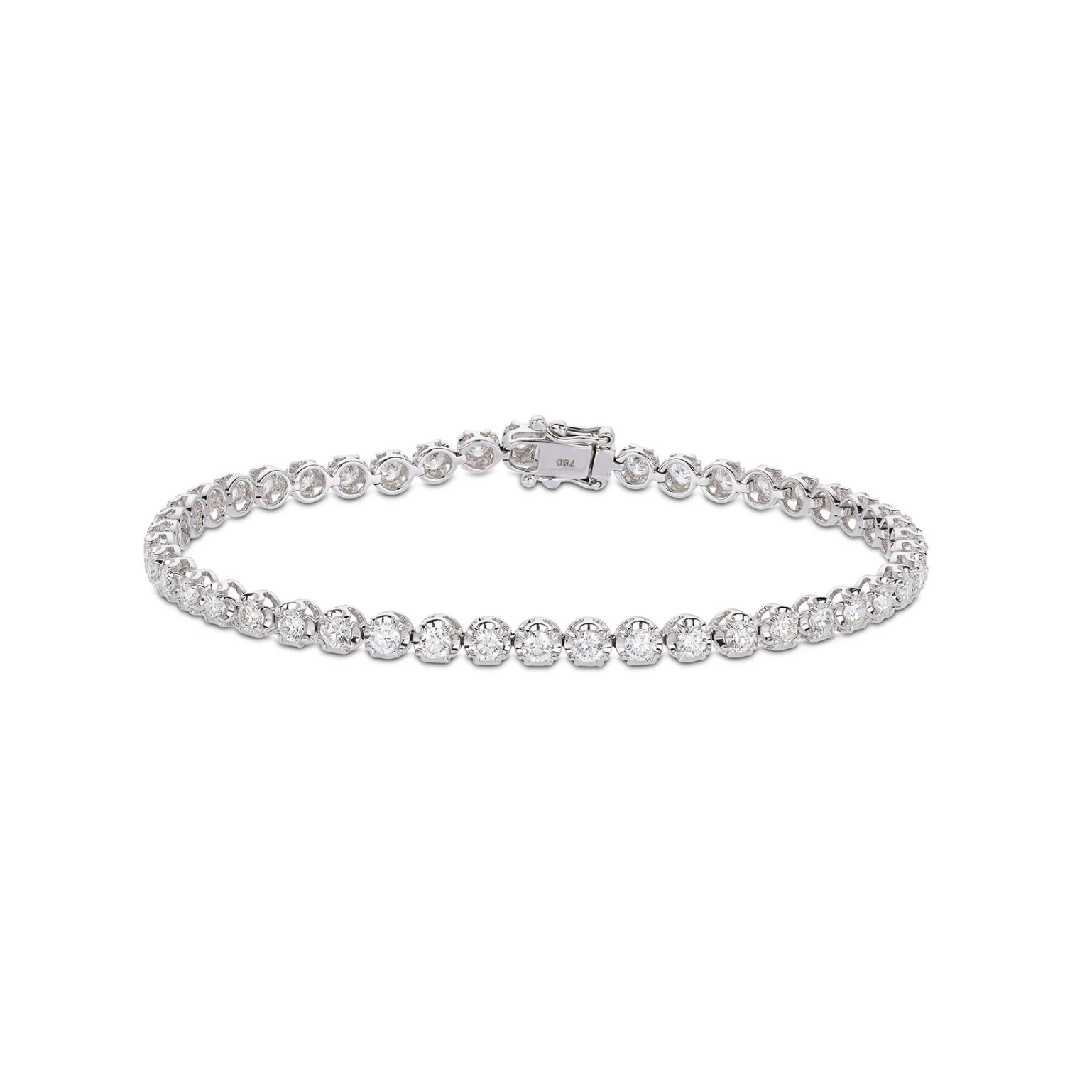 Fall in love with this effortlessly elegant and sophisticated 18ct White Gold 3.71ct Brilliant Cut Claw Set Tennis Bracelet. Bringing together exceptional round brilliant cut diamonds in a claw setting, this ladies tennis bracelet will add glamour to your looks. Diamond Information: Cut – Round Brilliant, Colour – G-H, Clarity – SI, Carat Weight – 3.71ct.