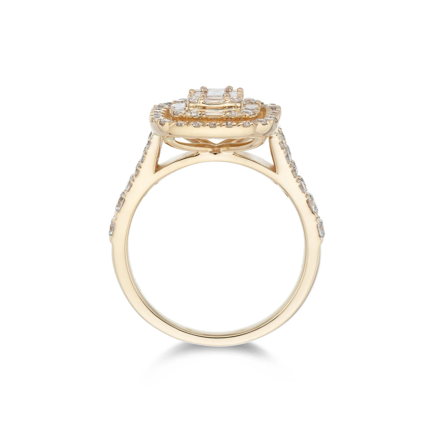 18ct yellow gold round brilliant baguette diamond 1.00ct split shoulder cluster