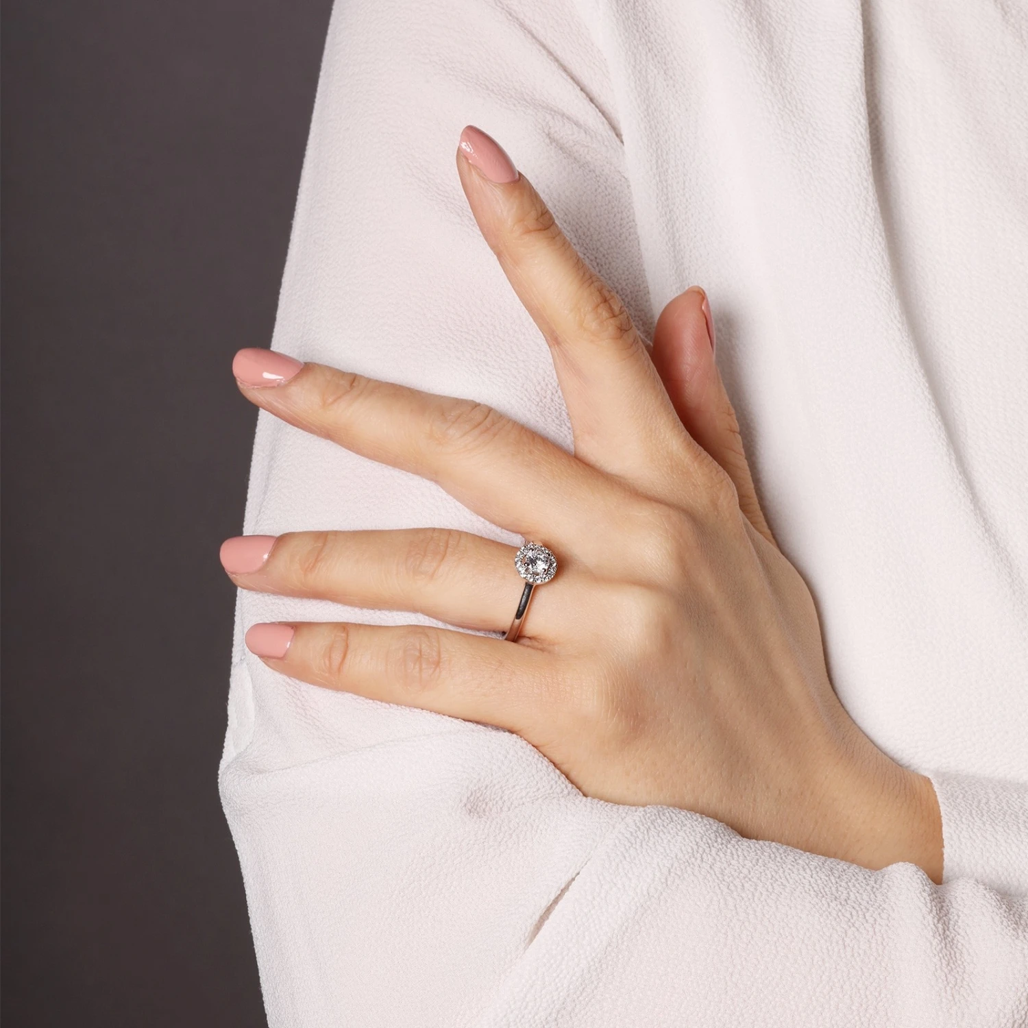 Propose to your one true love and show your eternal commitment with this 18ct yellow gold 0.50 carat total weight brilliant cut diamond engagement ring. A glittering halo of brilliant cut diamonds surrounds a 0.33ct brilliant cut solitaire in a design that is certain to steal your loved one’s heart as you get down on one knee. Diamond Information: Cut – Round Brilliant, Colour – G-H, Clarity – SI1-SI2, Carat Weight – 0.50ct.