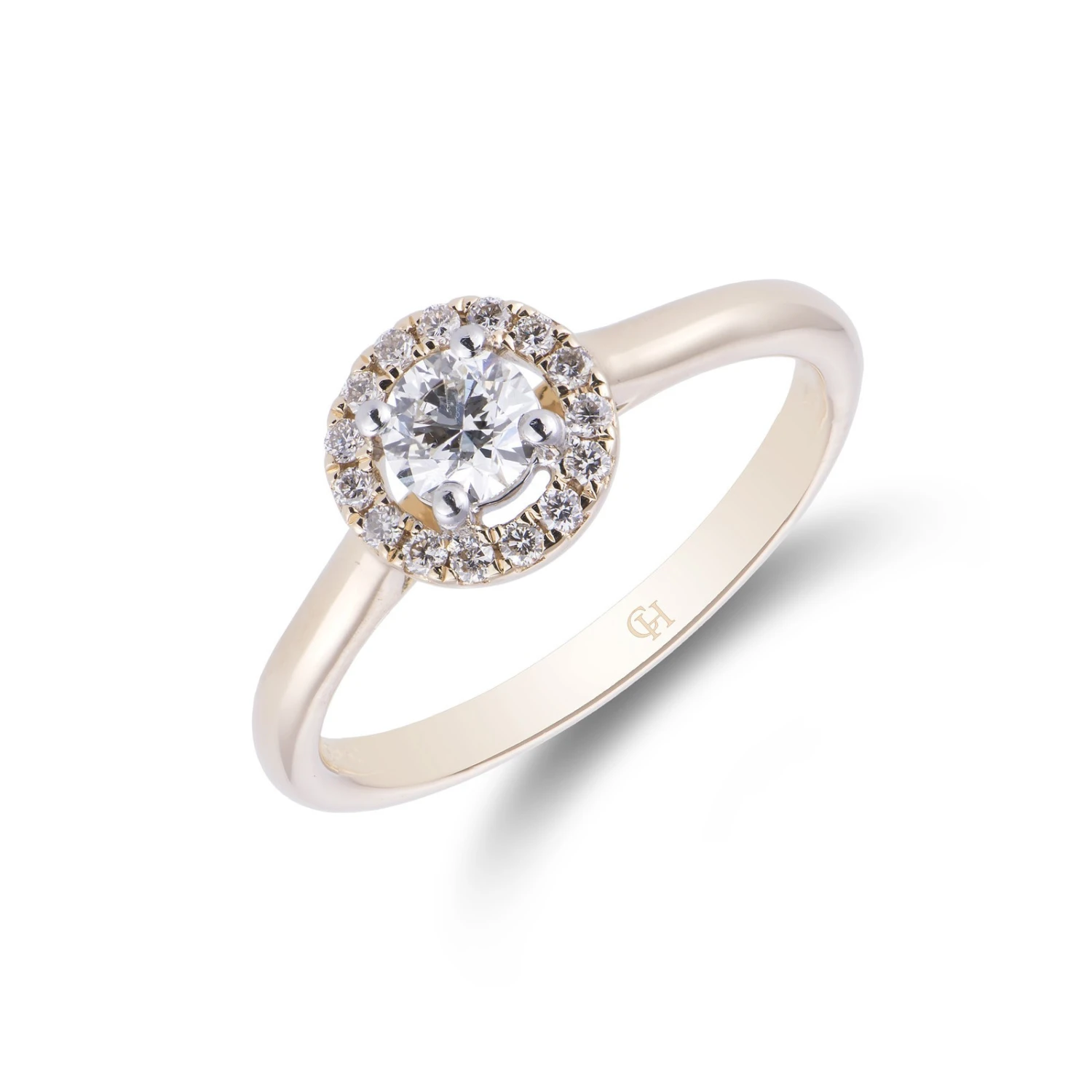 Chisholm Hunter 18ct Yellow Gold Brilliant Cut 0.33ct Diamond Halo Ring