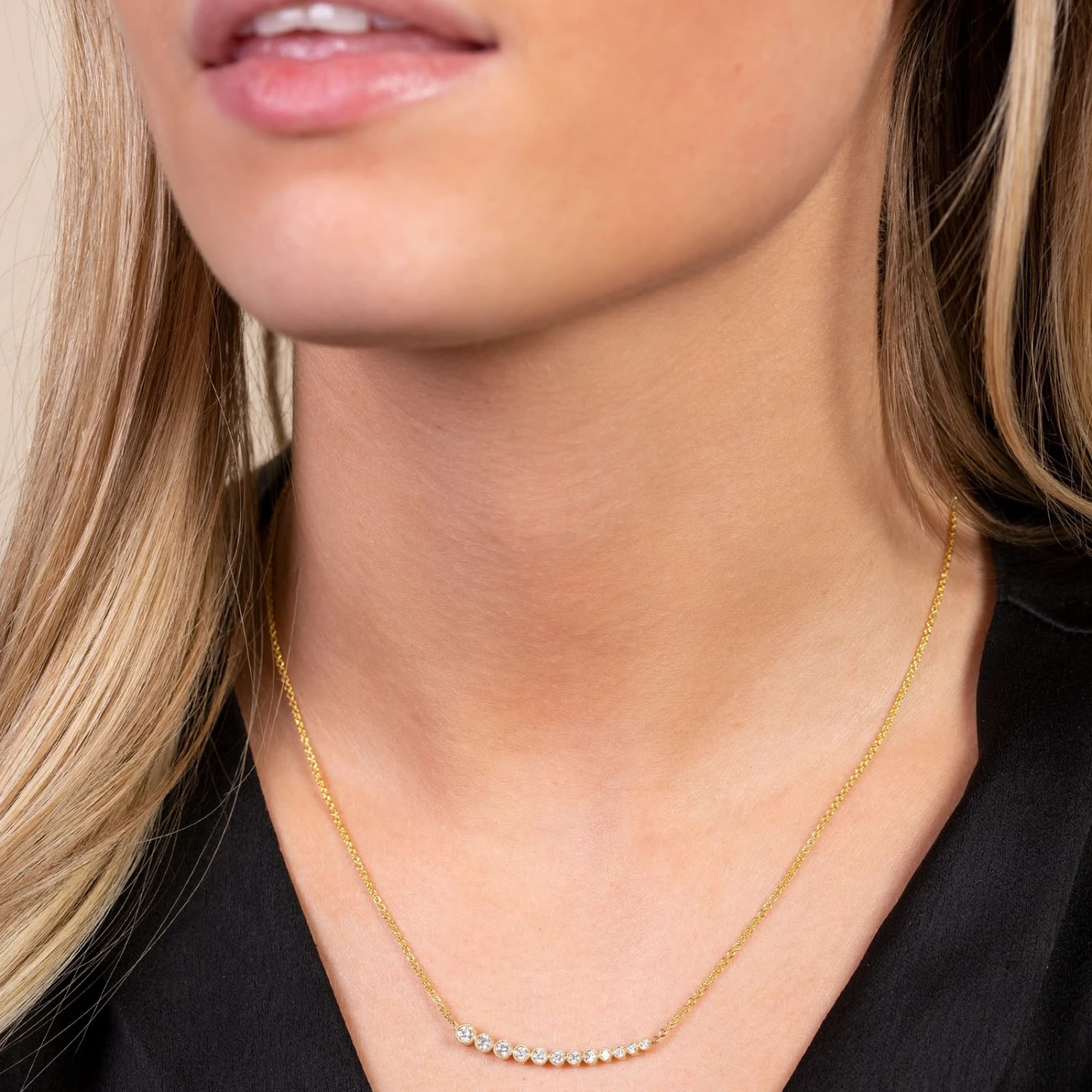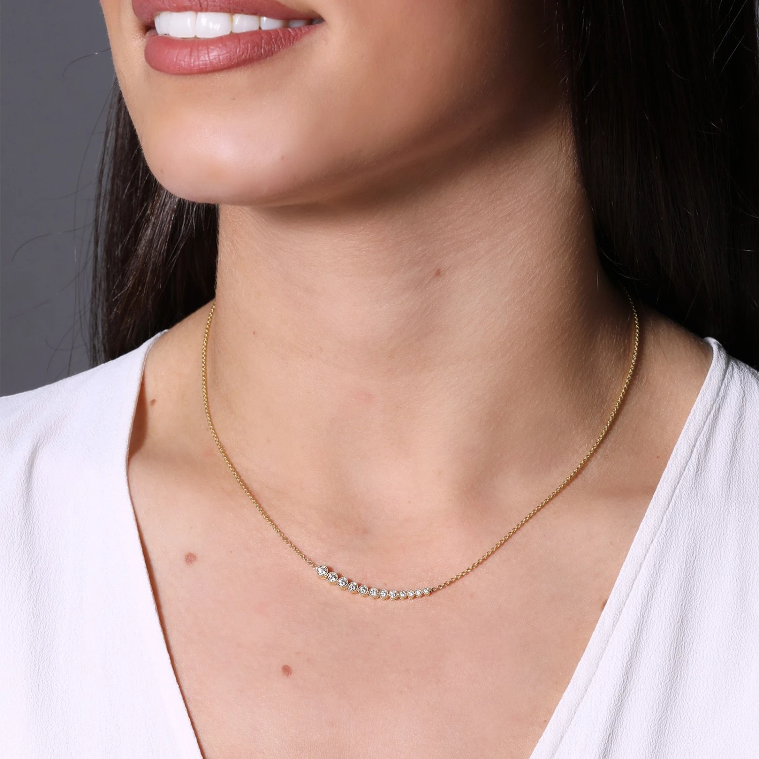 Complete your classic look with this stunning 18ct Yellow Gold 0.37ct Brilliant Cut Graduated Diamond Necklace. This beautiful piece is expertly crafted from the finest 18ct yellow gold and features a row of graduating in size round brilliant cut diamonds, totalling 0.37ct. Give the gift of luxury with this stunning necklace – perfect for marking any special occasion. Diamond Information: Stone Colour- G-H, Cut- Brilliant, Total Carat- 0.37ct. Presented in luxury Chisholm Hunter gift packaging.