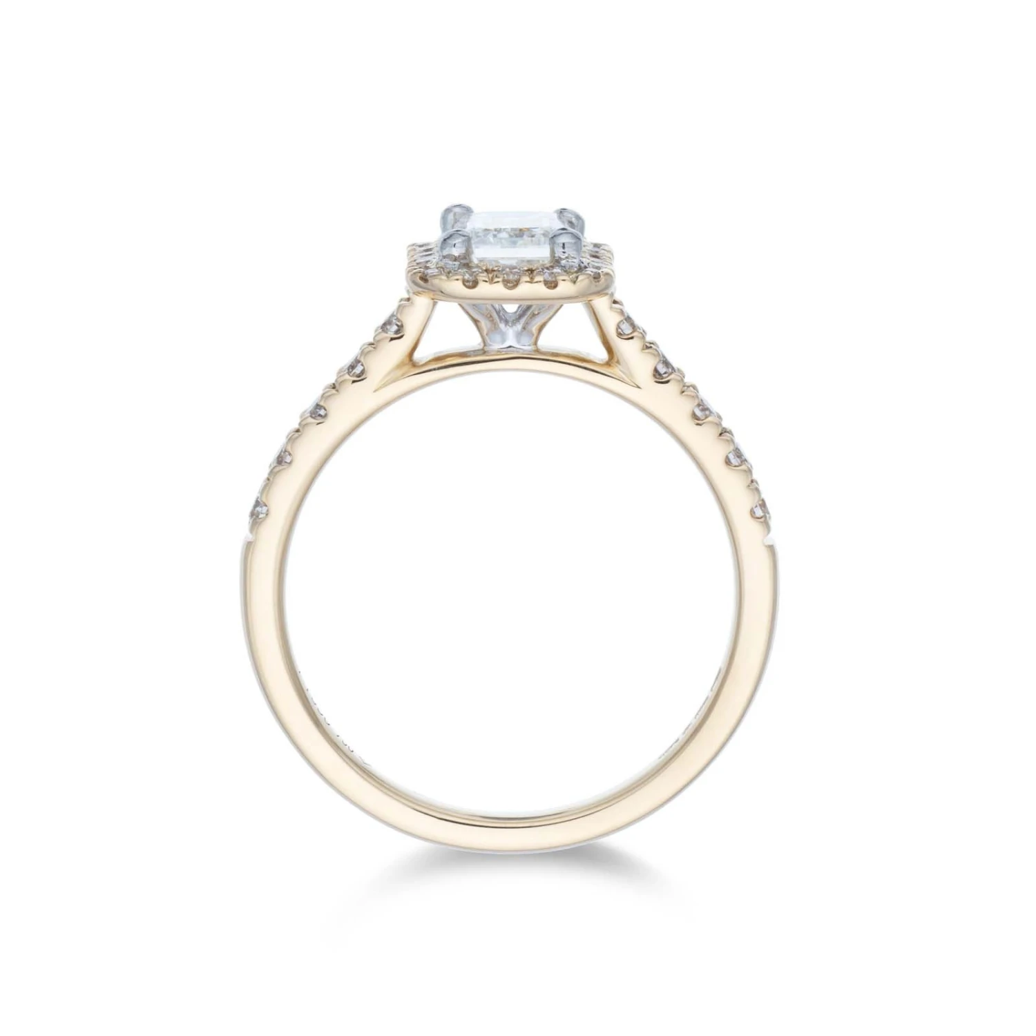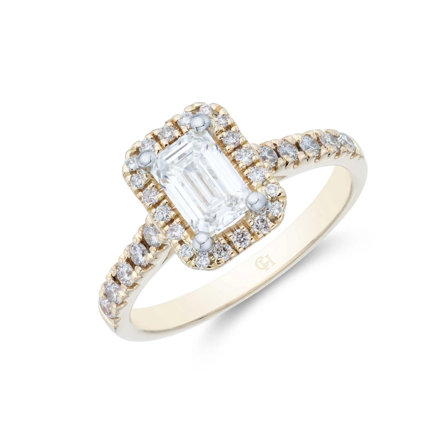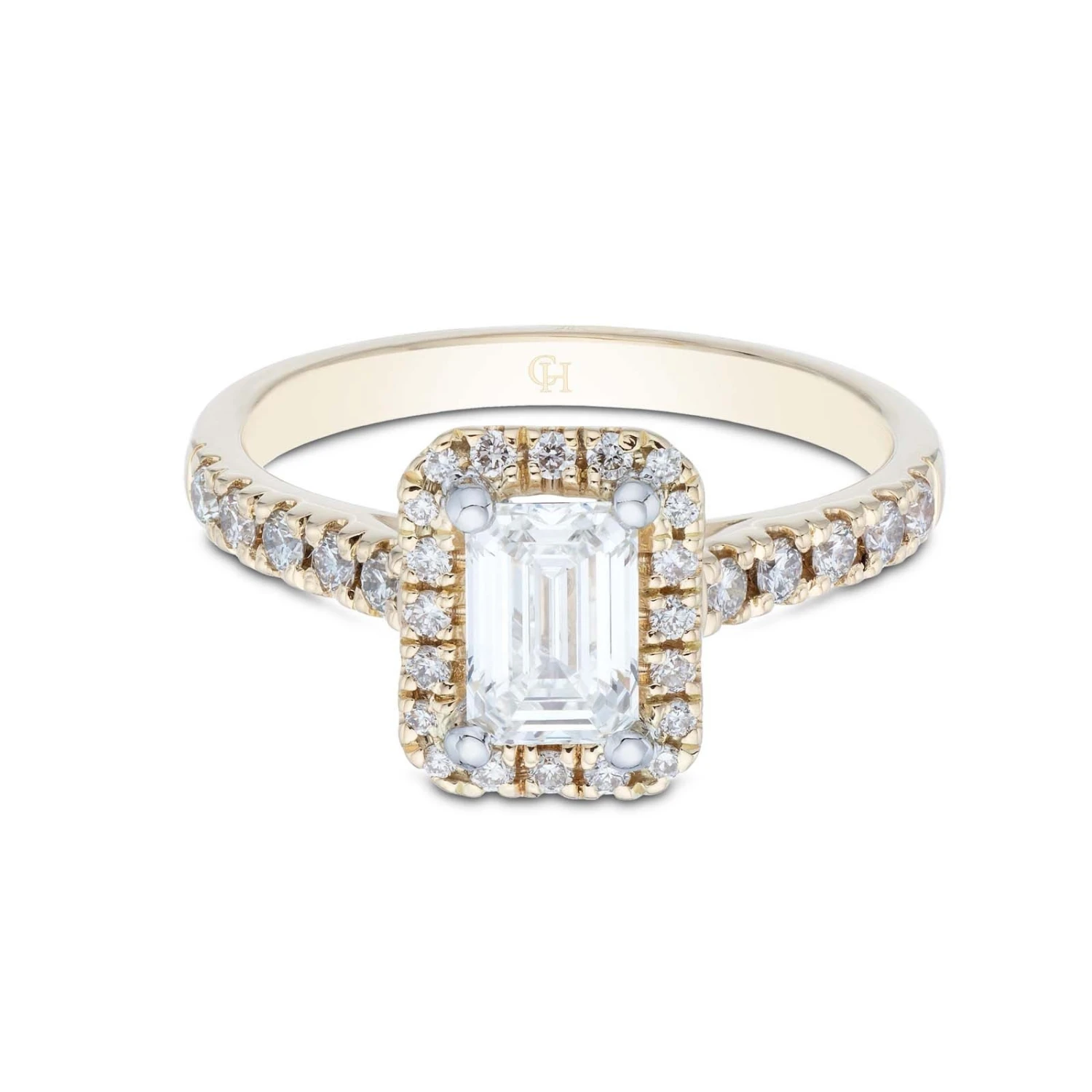 Chisholm Hunter 18ct Yellow Gold Emerald Cut 1.05ct Diamond Halo Solitaire Ring