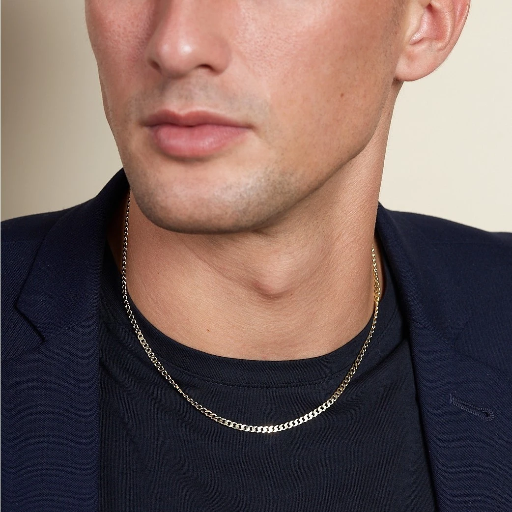 Discover the perfect gents curb necklace here at Chisholm Hunter. Set in stunning 18ct yellow gold, this 18” necklace features a 3.10mm wide curb link, making it a stylish finishing touch to any look.