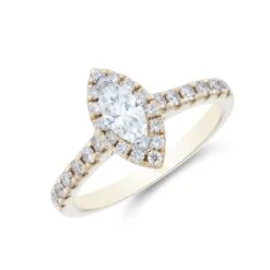 18ct yellow gold marq diamond 0.33 halo solitaire 0.68tw