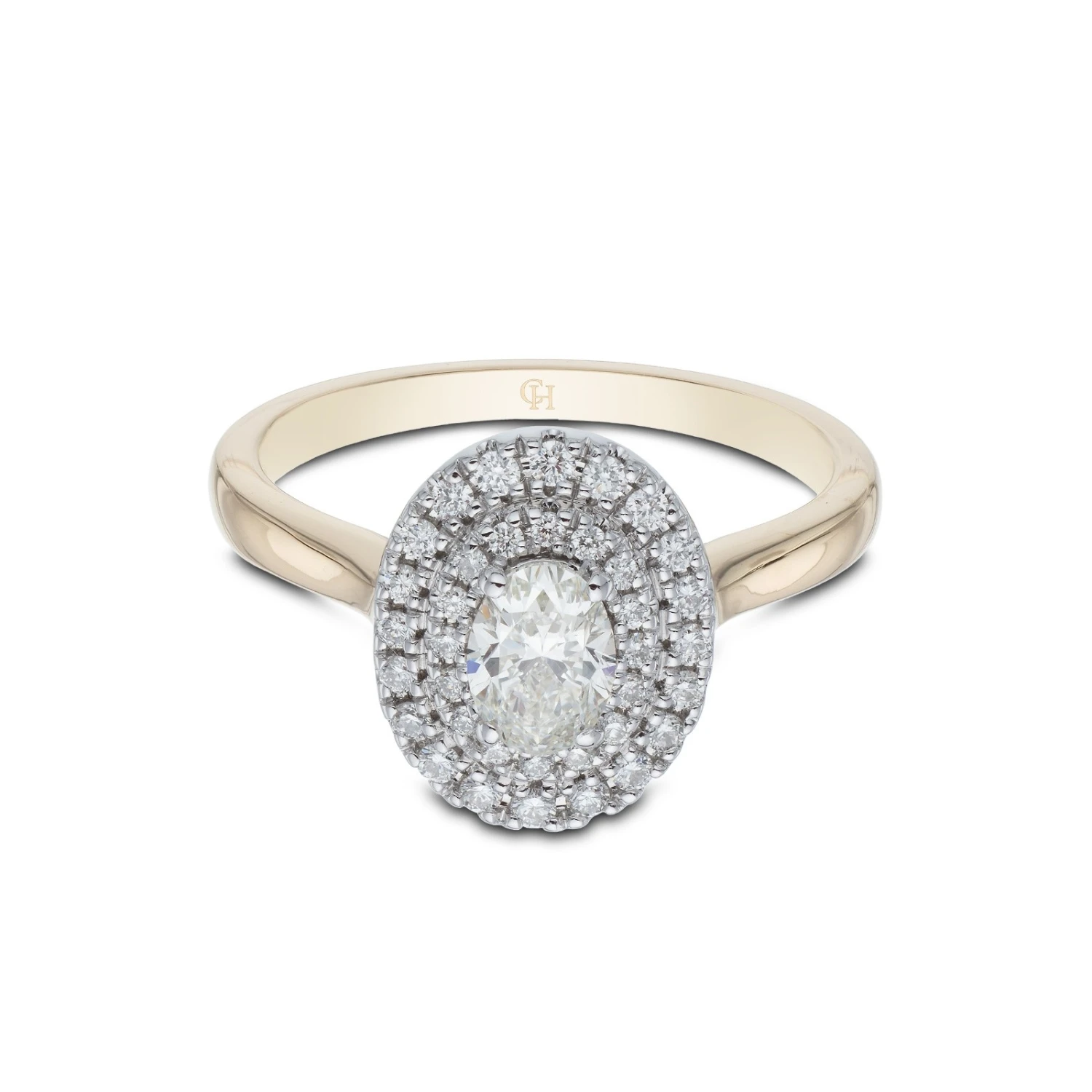Chisholm Hunter 18ct Yellow Gold Oval Cut 0.50ct Diamond Double Halo Ring