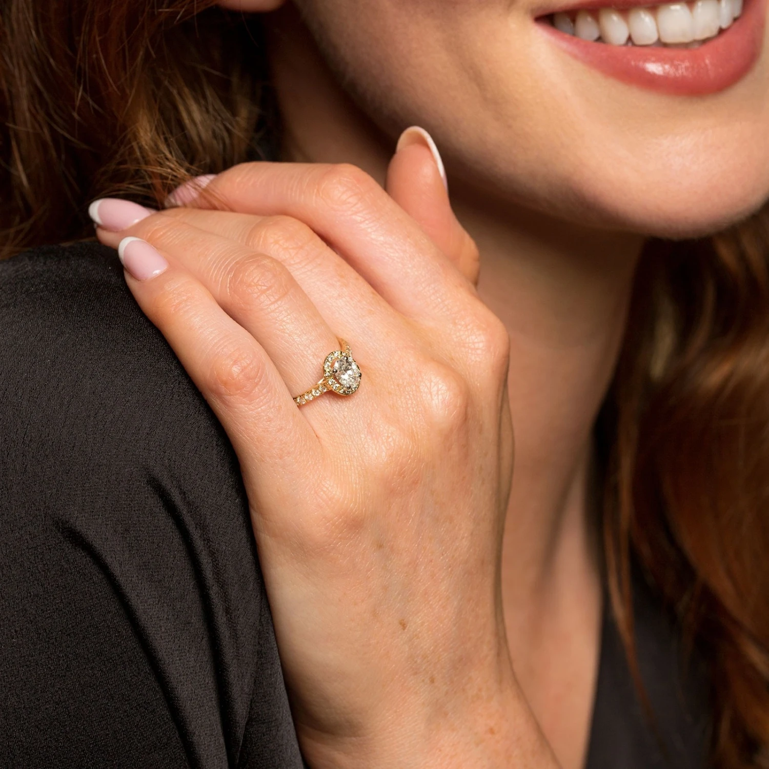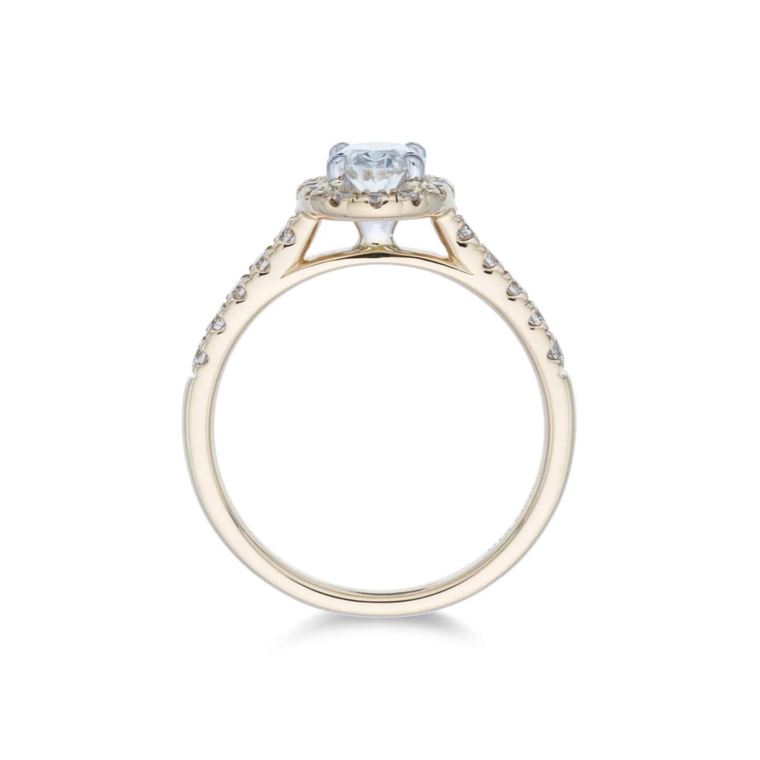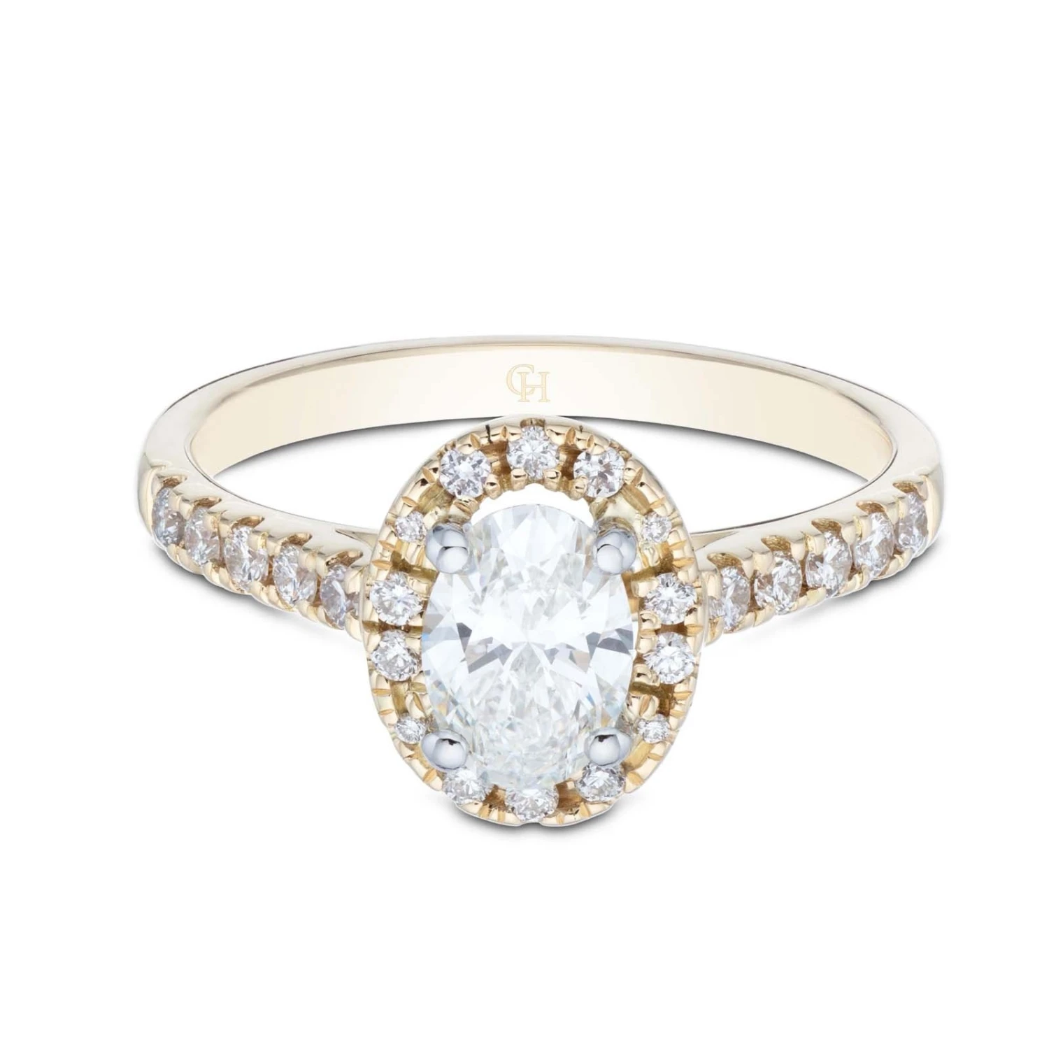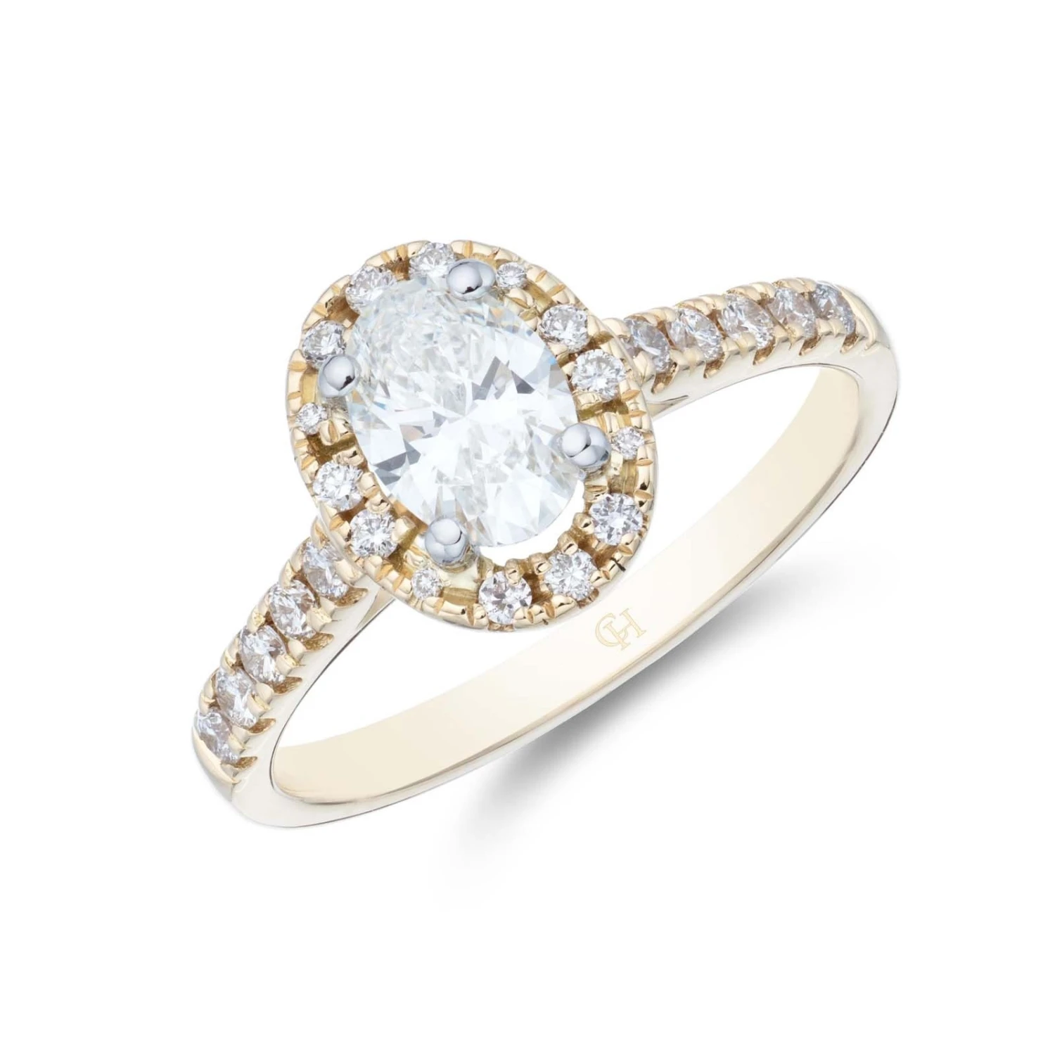 Chisholm Hunter 18ct Yellow Gold Oval Cut 1.05ct Diamond Halo Solitaire Ring