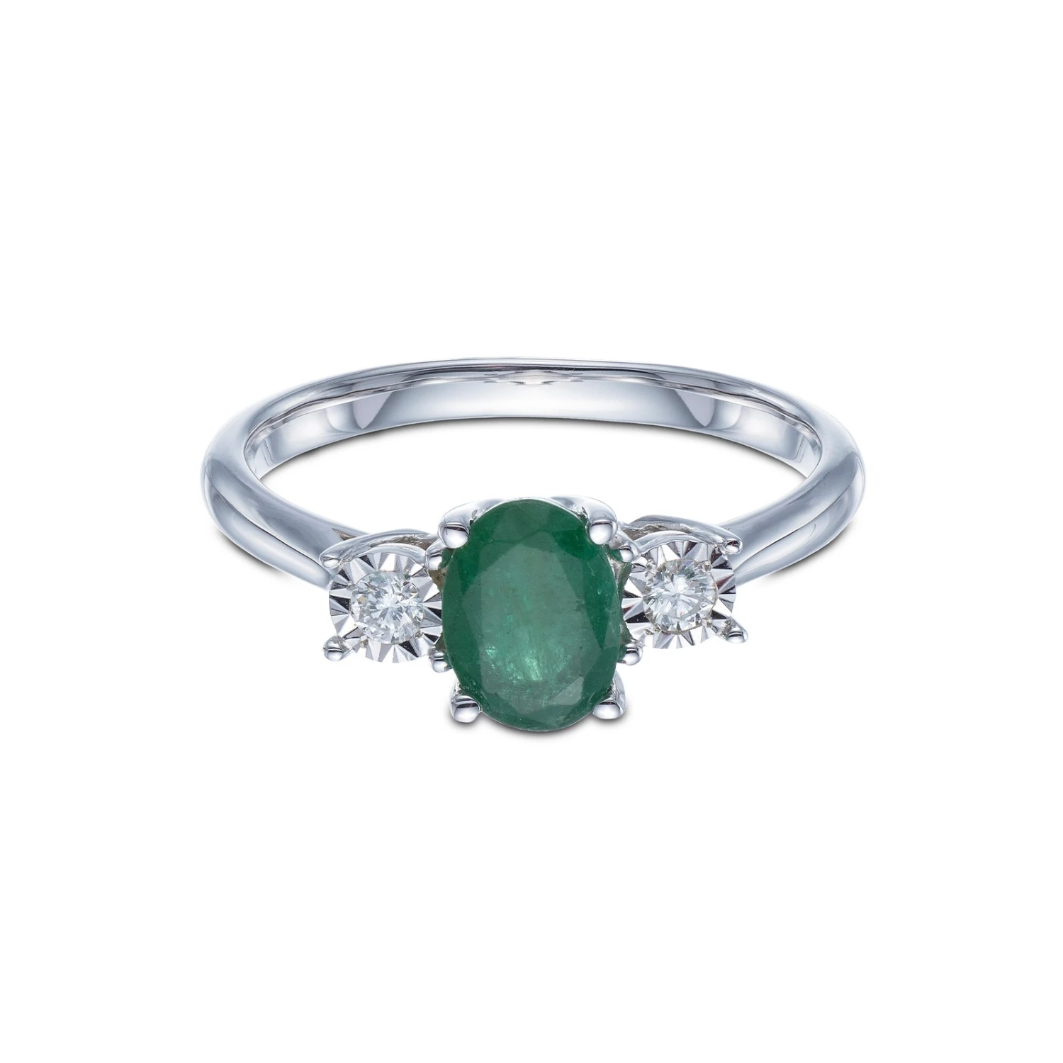 Set in 9ct White Gold, this enchanting three stone ring is the perfect gift for a loved one. Featuring a 0.75ct oval emerald centre stone with 0.05ct diamonds either side. Say “I love you” with this coloured stone and diamond trilogy ring. Discover coloured stones at Chisholm Hunter today.