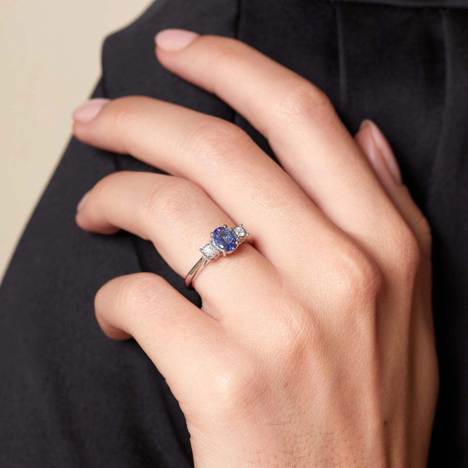Chisholm Hunter 9ct White Gold 0.10ct Diamond And 0.75ct Tanzanite Trilogy Ring