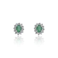 Chisholm Hunter 18ct White Gold Oval Cut 0.33ct Emerald And 0.48ct Diamond Halo Earrings