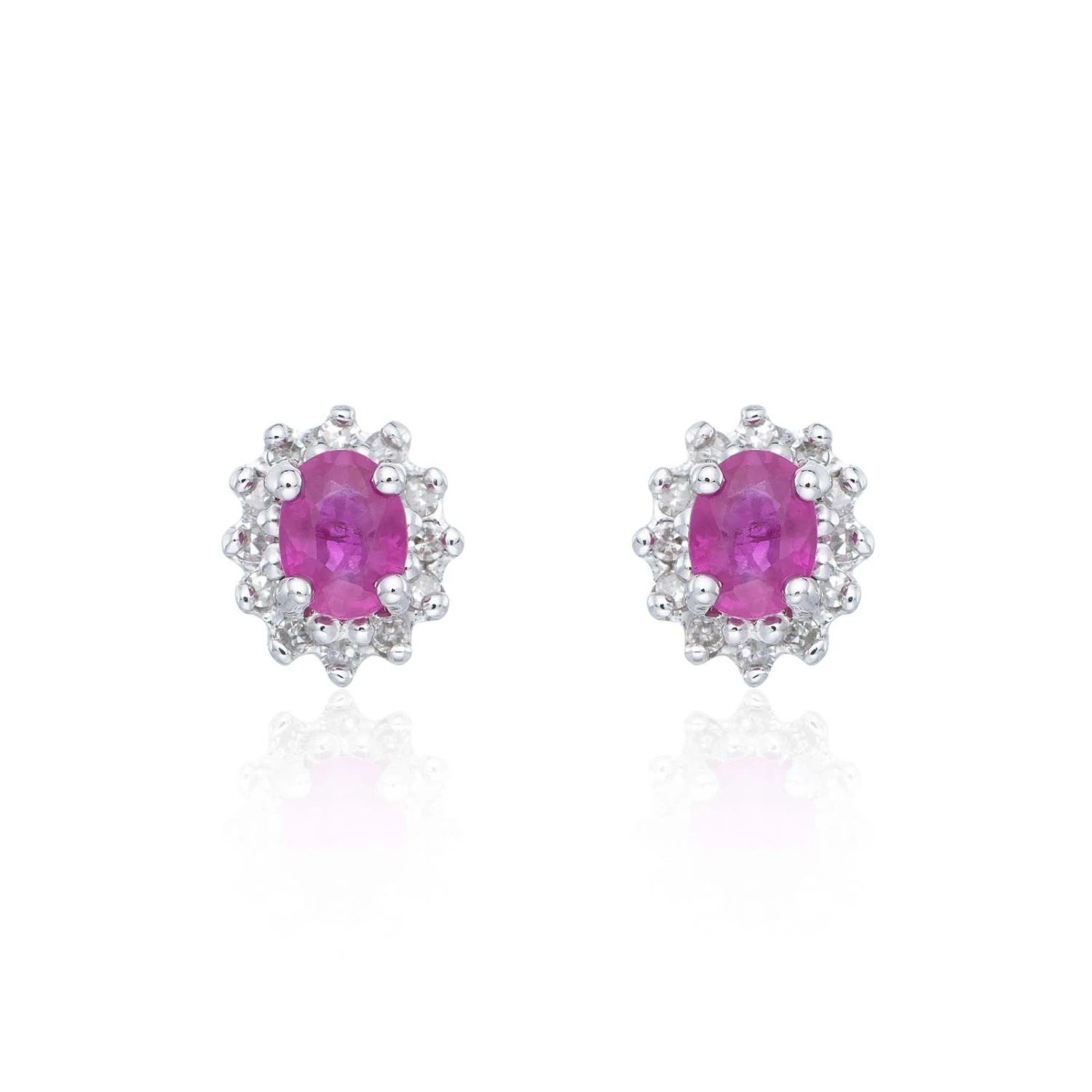 Chisholm Hunter 9ct White Gold Diamond 0.18ct And Ruby Halo Earrings