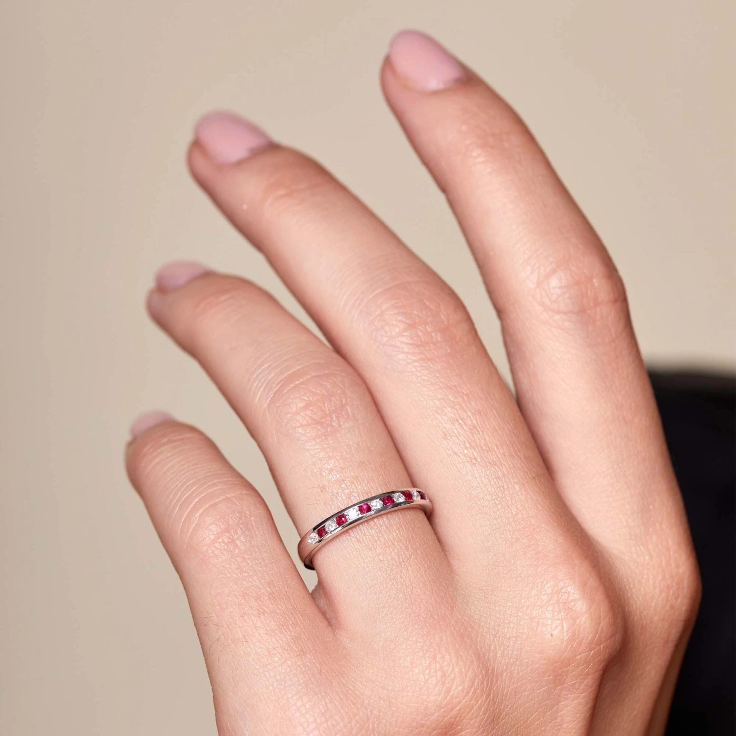 Indulge in the beauty and allure of the 9ct White Gold 0.14ct Diamond and 0.14ct Ruby Ring by Chisholm Hunter. Embrace the sophistication and grace it brings, and let it become a treasured part of your jewellery collection.