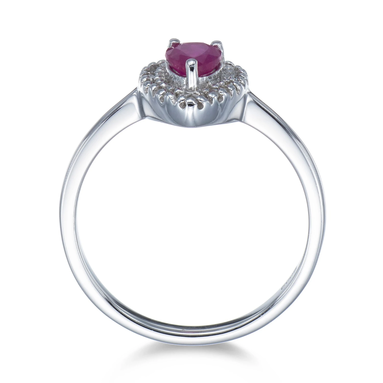 Chisholm Hunter 9ct White Gold Oval Cut 0.50ct Ruby And 0.55ct Diamond Cluster Ring