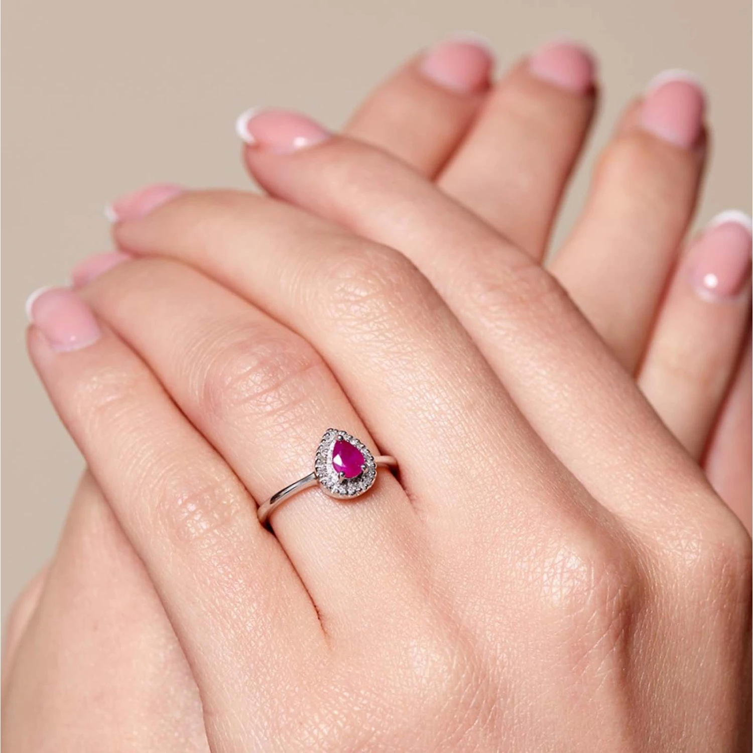 Chisholm Hunter 9ct White Gold 0.40ct Pear Ruby And 0.38ct Diamond Cluster Ring