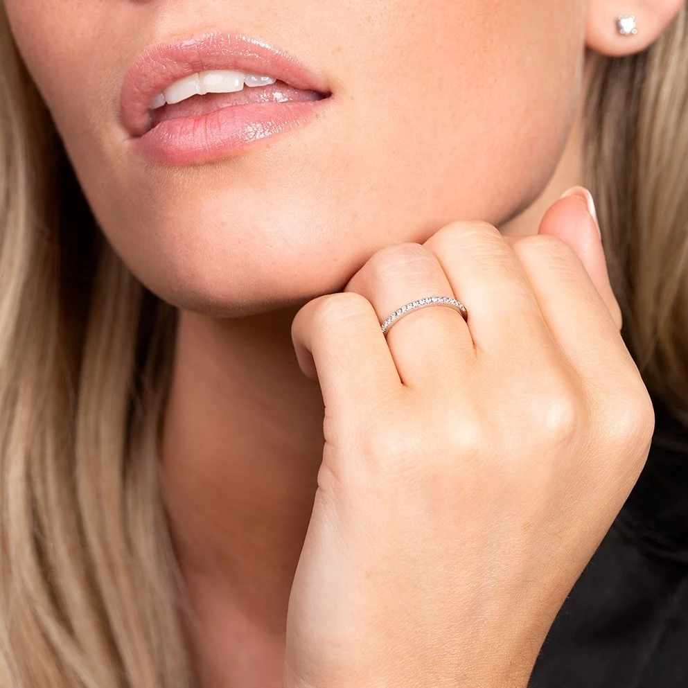 Showcase your love and commitment every day with this 9ct white gold half diamond eternity ring. Perfect for complementing a modern and contemporary sense of style the princess cut diamonds sit together in the centre of a polished band, with a 0.15 total carat diamond weight, the diamonds are claw set to allow a maximum amount of light, to showcase their fire and brilliance. A ring that is sure to have you falling head over heels in love and will melt your heart every time you see it.