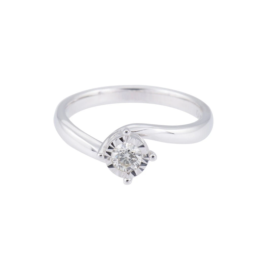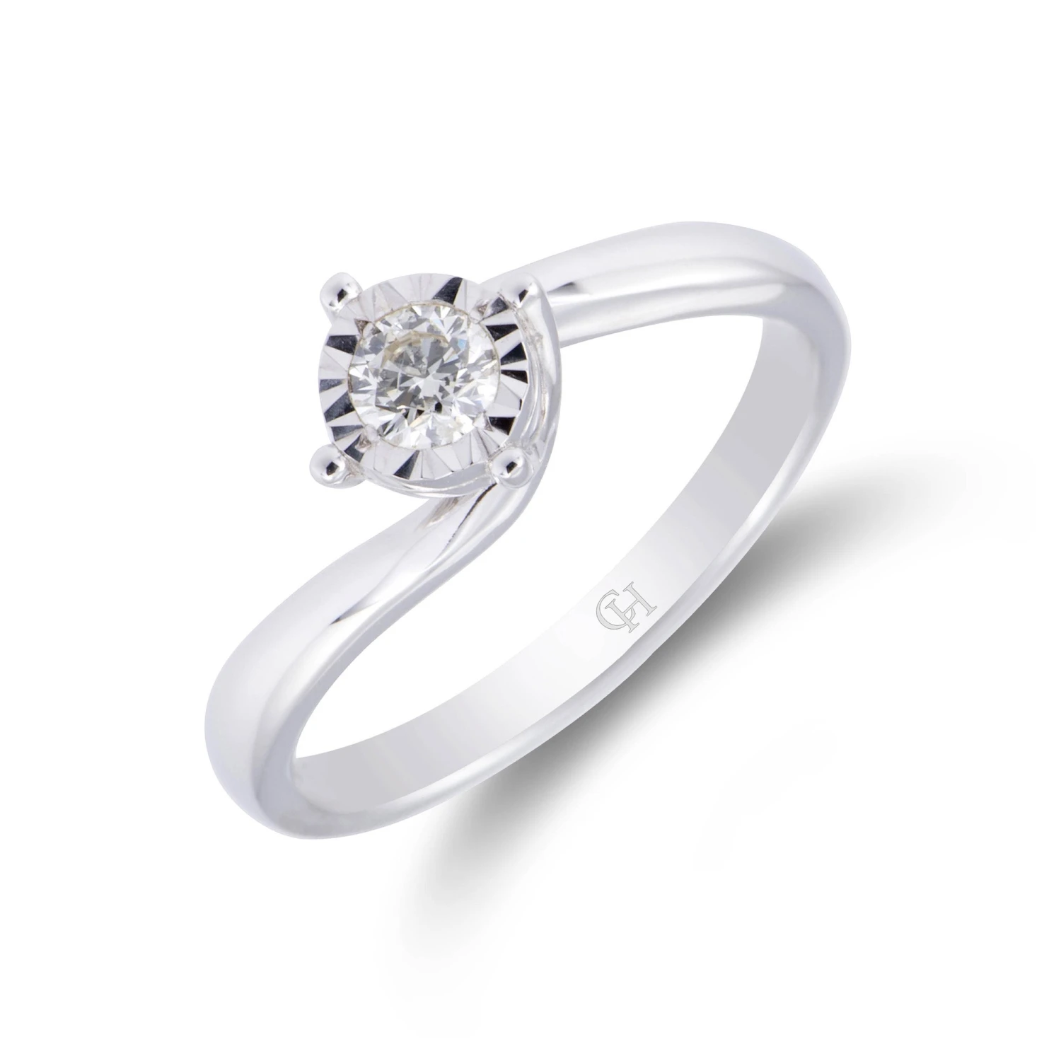Chisholm Hunter 9ct White Gold Brilliant Cut 0.15ct Diamond Twist Solitaire Ring