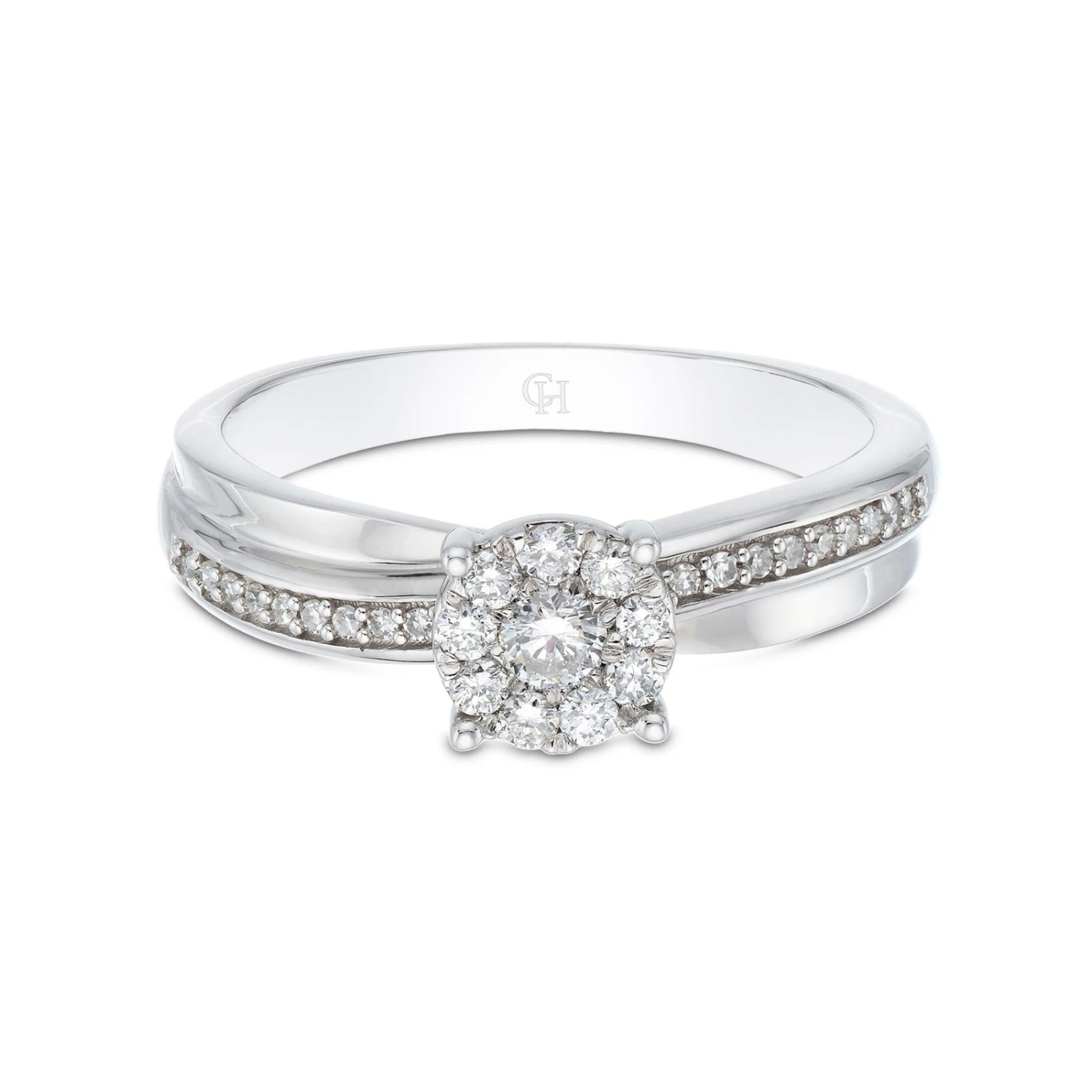 Be the first to review “Chisholm Hunter 9ct White Gold Brilliant Cut 0.20ct Diamond Cluster Ring” Cancel reply