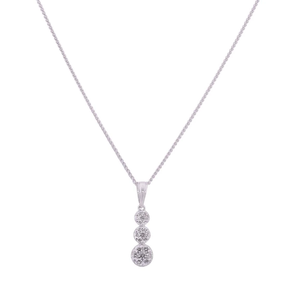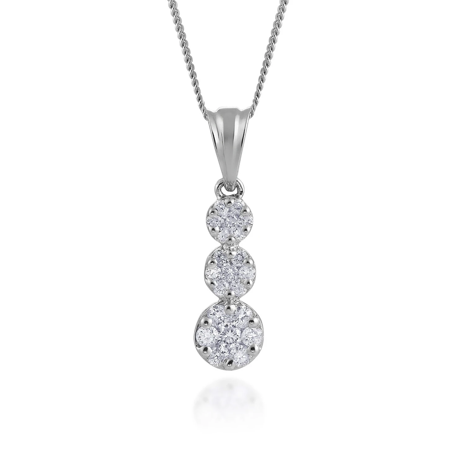 Add a touch of spakling evening luxe to your look with this 9ct white gold diamond necklace. Three dazzling round brillaint cut diamonds, with a total diamond carat weight of 0.50ct, create this cluster drop style necklace. A truly elegant and timeless piece, this is a wonderful additon to any jewellery collection; whether a gift for someone special or yourself, this is a sparkling choice that will be worn time and time again.