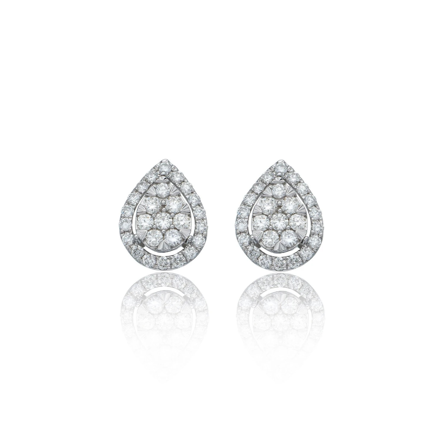 Chisholm Hunter 9ct White Gold Brilliant Cut 1.00ct Pear Shaped Diamond Halo Earrings