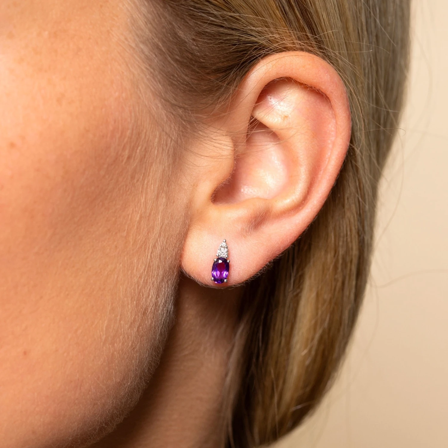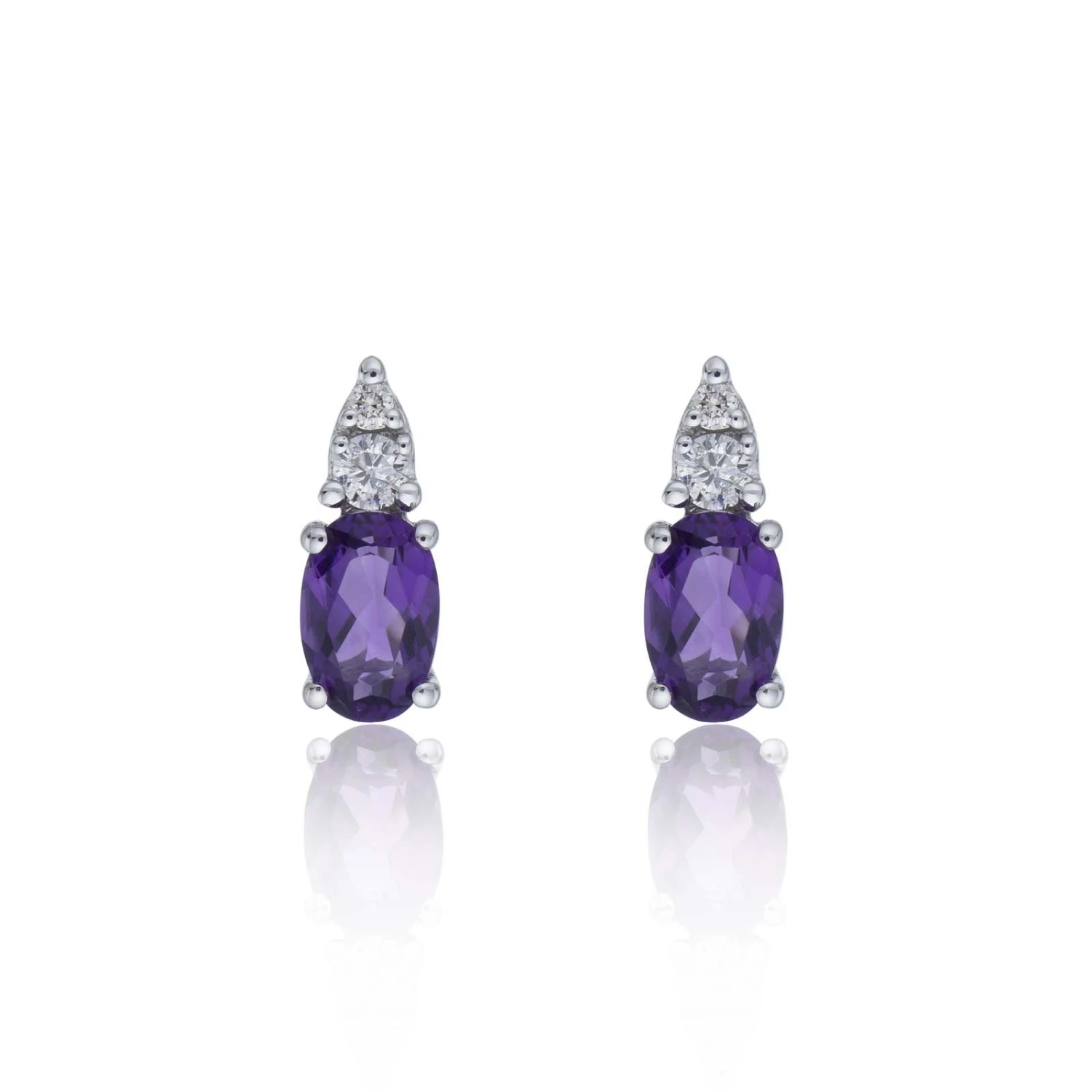 Chisholm Hunter 9ct White Gold Diamond 0.15ct And Amethyst Earrings